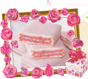 女の子の大好きなローズの香りを贅沢にとじこめた、バラのチョコレートでラングドシャクッキーをコーティング。中は木苺風味のクリームがサンドされていて、女子ゴコロが踊らされること間違いなし!やさしいピンクが心を華やかにしてくれそう♪ラッピングも可愛くて◎!