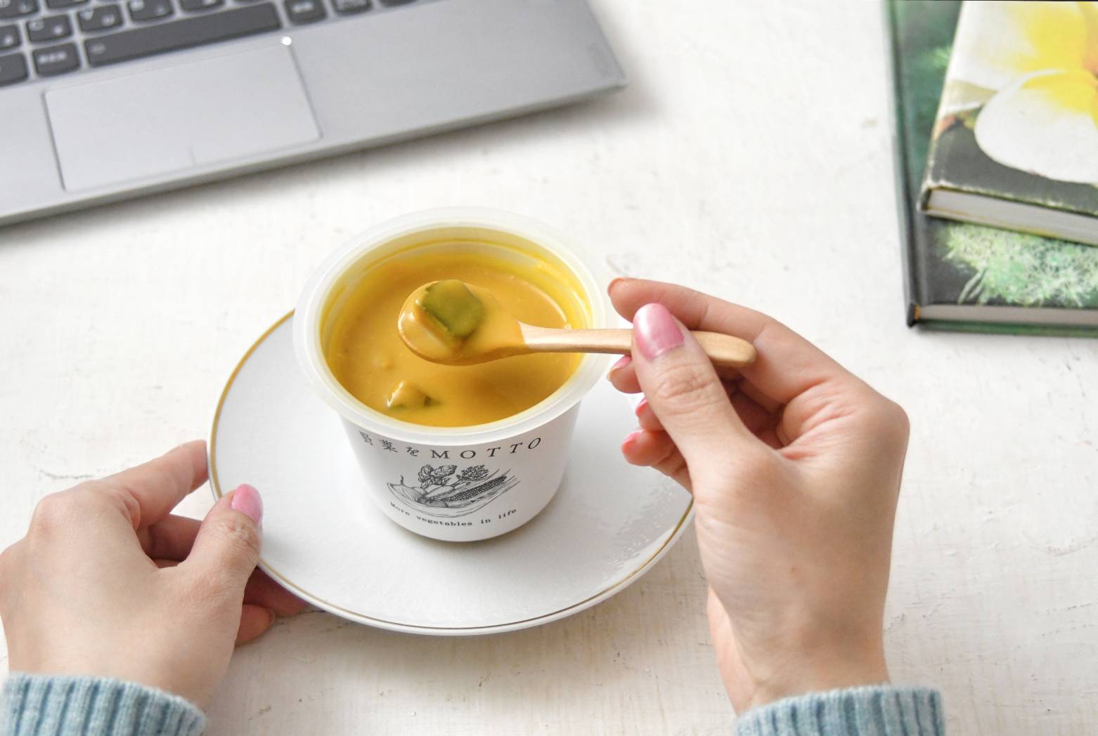 レンジでたった1分温めるだけで、国産野菜がたっぷりのスープが楽しめます♪どのスープも野菜たっぷりでとてもおいしいんです(๑´ڡ`๑)1分でできるとは思えない本格的なお味でした❣️常温保存OKなので、仕事場に持っていく時にも便利ですね☺️それにパッケージもかわいいのでギフトにもいいかも。