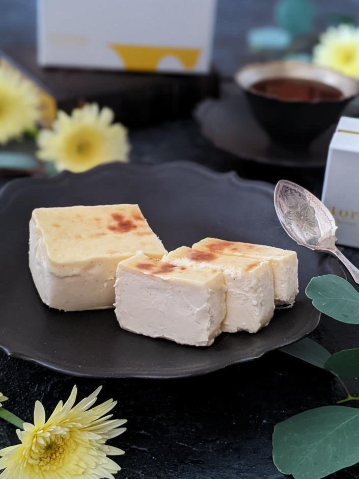 驚いたのはその口溶けだけじゃなくお味も!チーズケーキの材料と言えばクリームチーズ、生クリーム、卵、砂糖、粉が一般的だよね。でもこのとろ生チーズケーキは、この材料にバニラビーンズ、焦がしキャラメル、発酵バターといった3種類の「香り」を加える事で極上の味わいに✨