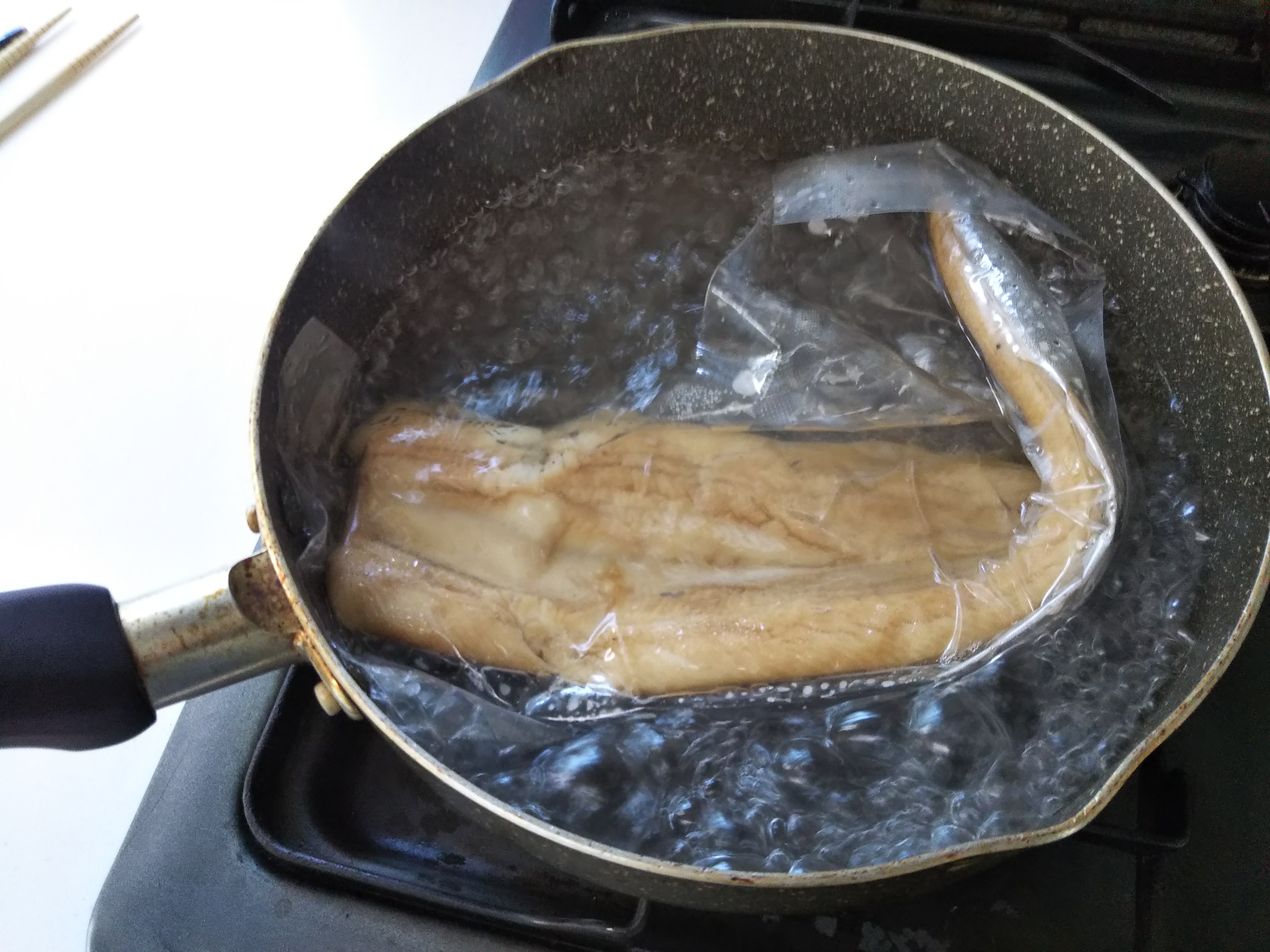 袋のまま湯煎(目安は冷凍状態で8分、冷蔵庫で自然解凍後5分程度)し、そのままお召し上がりください。