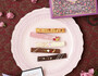 低温でじっくり焼き上げたサクサクのパンドゥミーにチョコレートをコーティングした販売期間限定「キューブラスク」です。手のひらサイズのラスクに、可愛らしくカラフルなトッピングをあしらっています。ローズピンクにブラックを合わせて、甘すぎない大人の配色のパッケージです。優雅な曲線を利かせて、ボタニカルでクラシカルな雰囲気の花柄を描いています。使用しているチョコレートは、ミルクチョコレート、ストロベリーチョコレート、ホワイトチョコレートの3種類。チョコレートの味わいに合わせて、フルーツやナッツで彩り華やかに飾り付けています。ミルクチョコレートにはドライリンゴやドライストロベリー、キャラメルクランチを、ホワイトチョコレートにはドライブルーベリーやピスタチオ、ホワイトクランチなどを合わせてアクセントにしています。