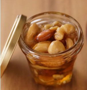 スプーン1杯でブドウ1房分のポリフェノールを含んだ「ワインはちみつ」です。果実感のあるブルガリア産チェリーはちみつに、ワイン濃縮液を加えた濃厚な甘みと、ワインの芳醇な香りが一緒に楽しめます。毎日の栄養バランスを気をつけている人にもピッタリで、寝る前の一杯や朝食のヨーグルトにかけて食べるのもオススメです。気になるアルコール量はしょうゆ小さじ1杯に含まれるアルコール度数と同程度です。