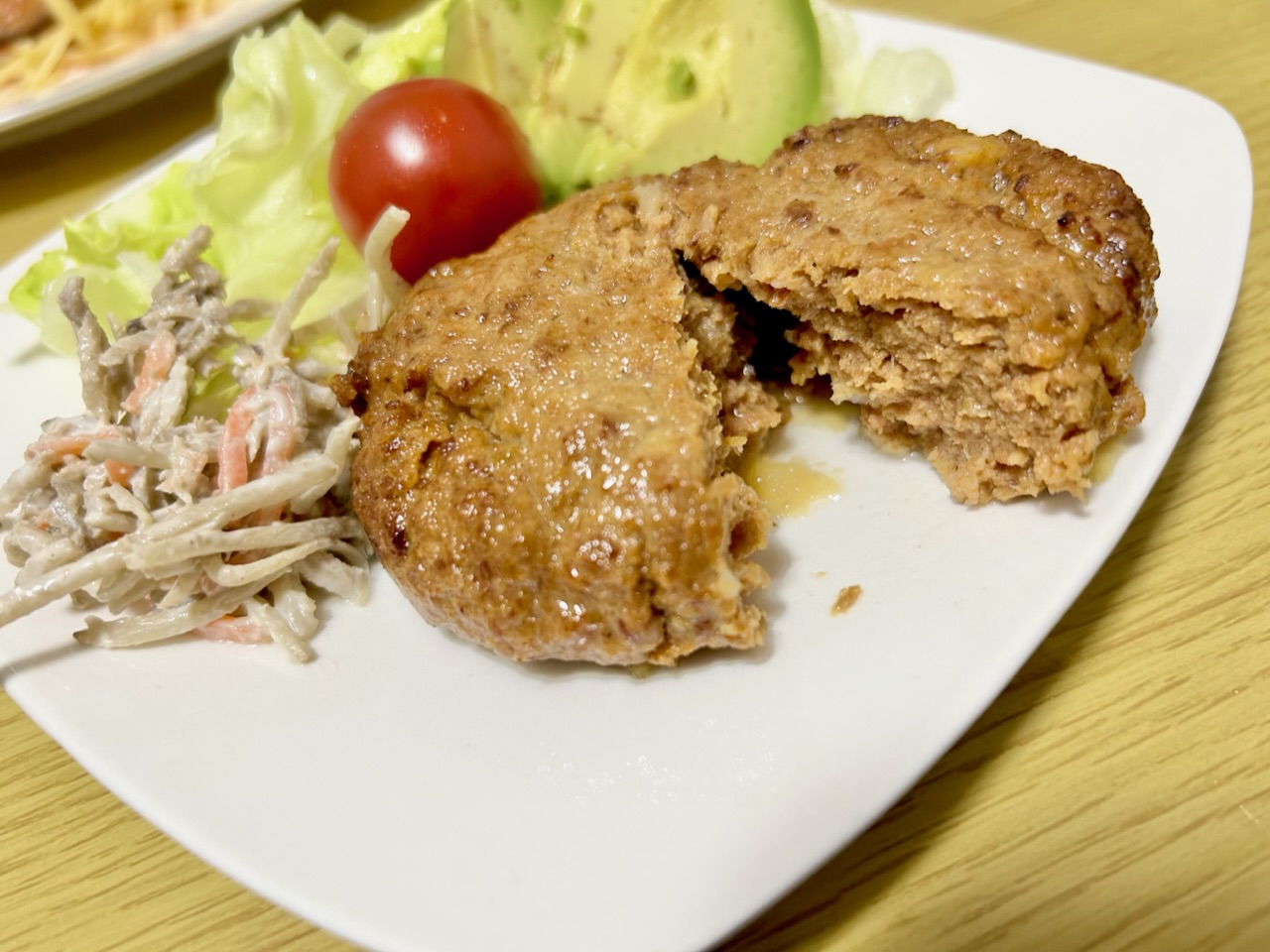 ハンバーグ自体がジューシーなため、お皿に出す時缶のオイルは捨てちゃっていいかな!好みにもよりますが!