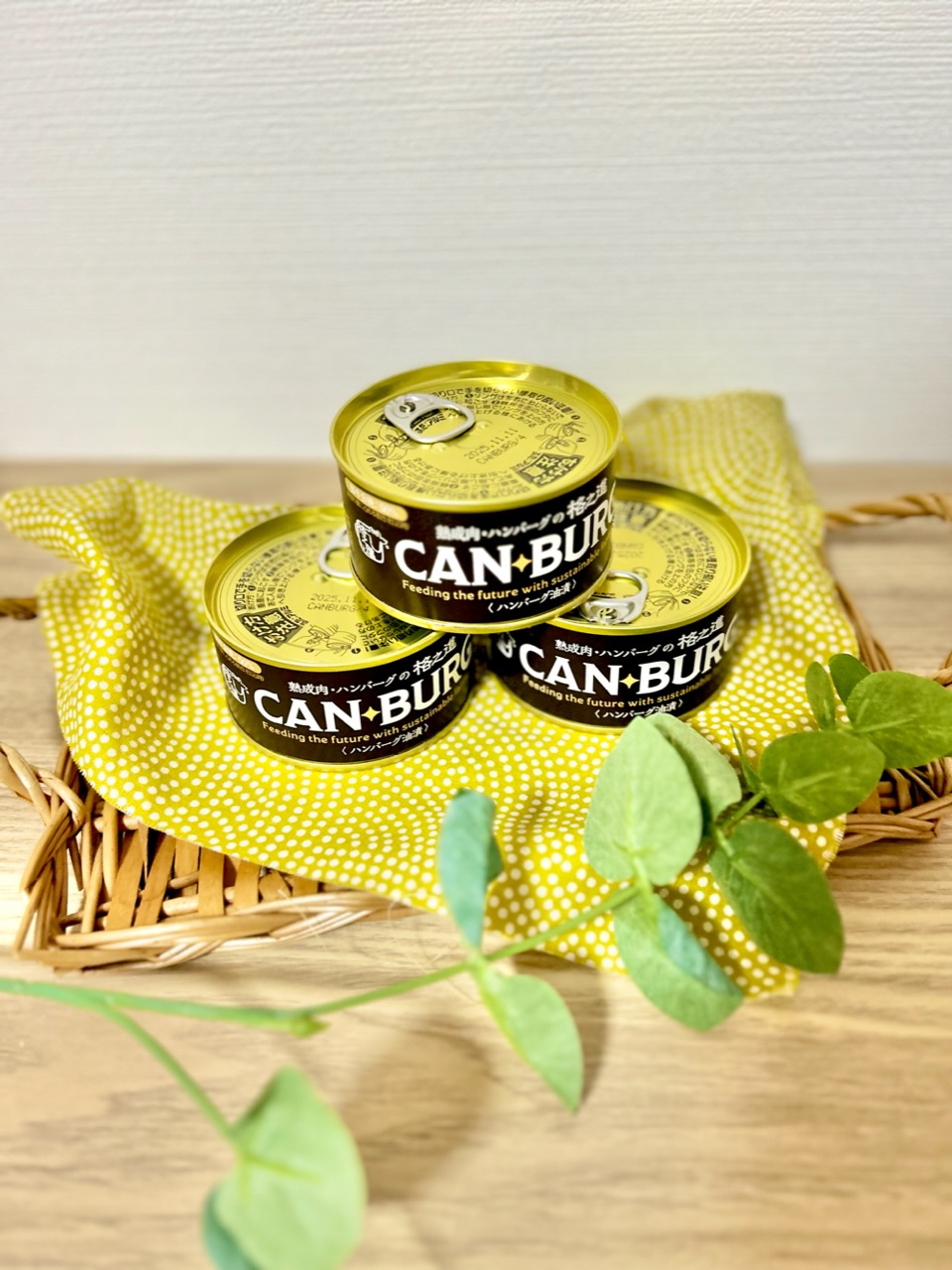 ハンバーグをジューシーに焼き上げ、旨味も一緒に缶の中に閉じこめた「缶詰ハンバーグ」です。無添加のハンバーグを、ひまわり油と一緒に缶に詰め煮焚いてあるので、肉汁とオイルが混ざり合い、缶詰から出てきたとは思えないしっとり感が特長です。常温保存可能なので保存食としてだけでなく、キャンプやお弁当のおかずとしても利用でき便利です。ギフトボックスもリッチな雰囲気なので、贈り物にもおすすめです。