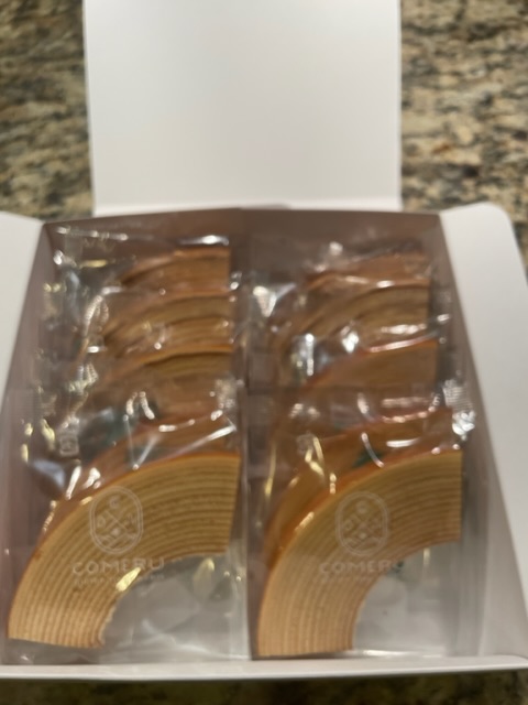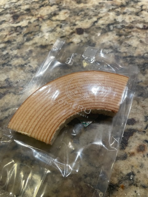 バウムクーヘンはしっとりもっちり食感で、パサパサとは無縁です☆バターの風味と甘味もあって とっても美味しいー☆