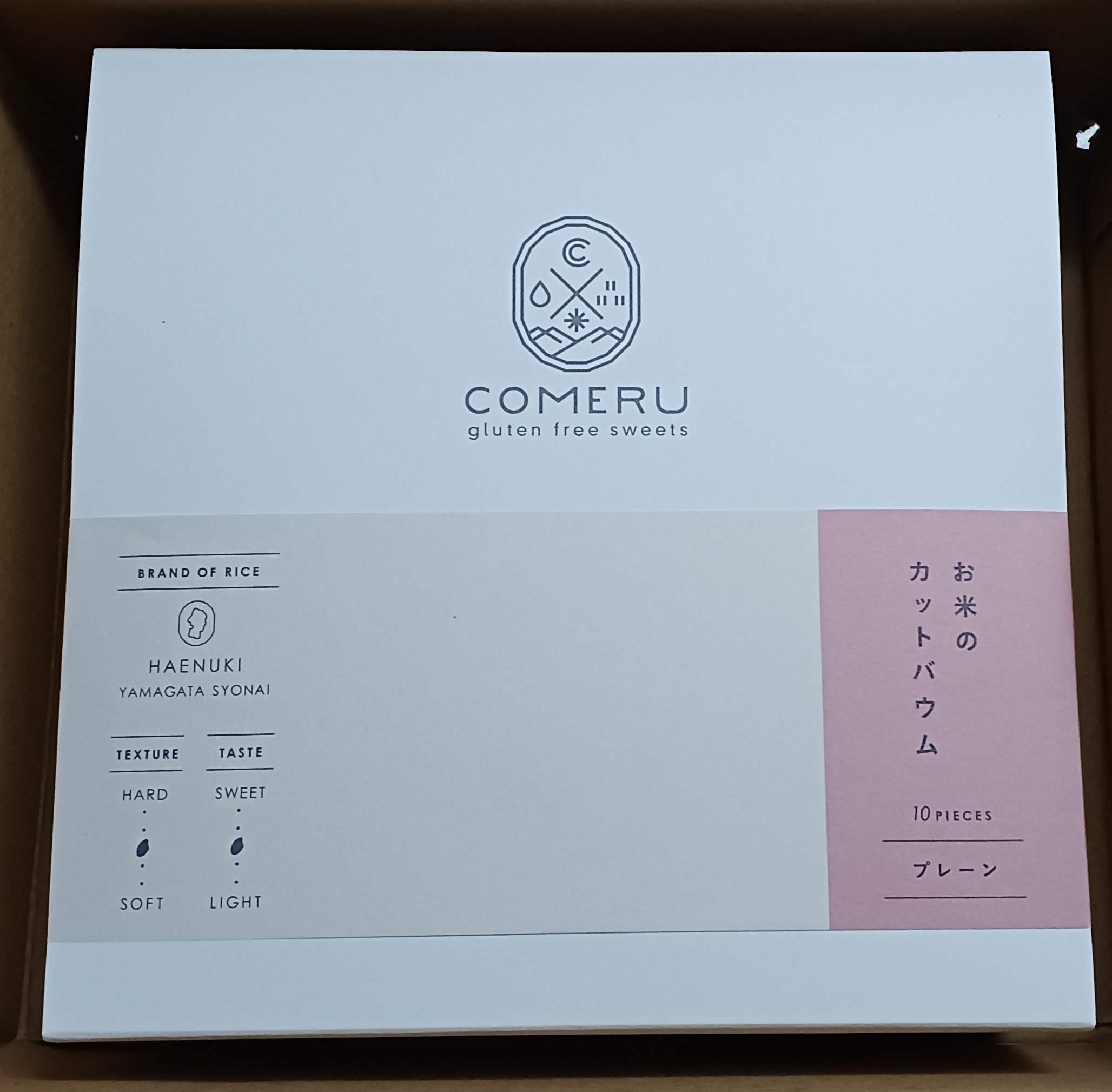 コメルがつくるバームクーヘンは、山形県庄内地方で育ったブランド米「はえぬき」の米粉を100%使用して焼き上げています。