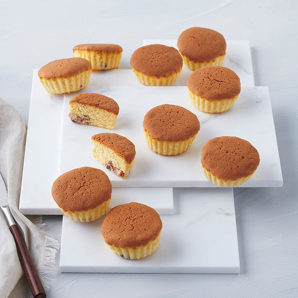 はちみつの香りがほんのり立ち上がり、口どけはほわっと軽くてしっとり。中に金時豆を入れて懐かしいお豆の風味と食感のアクセントを。