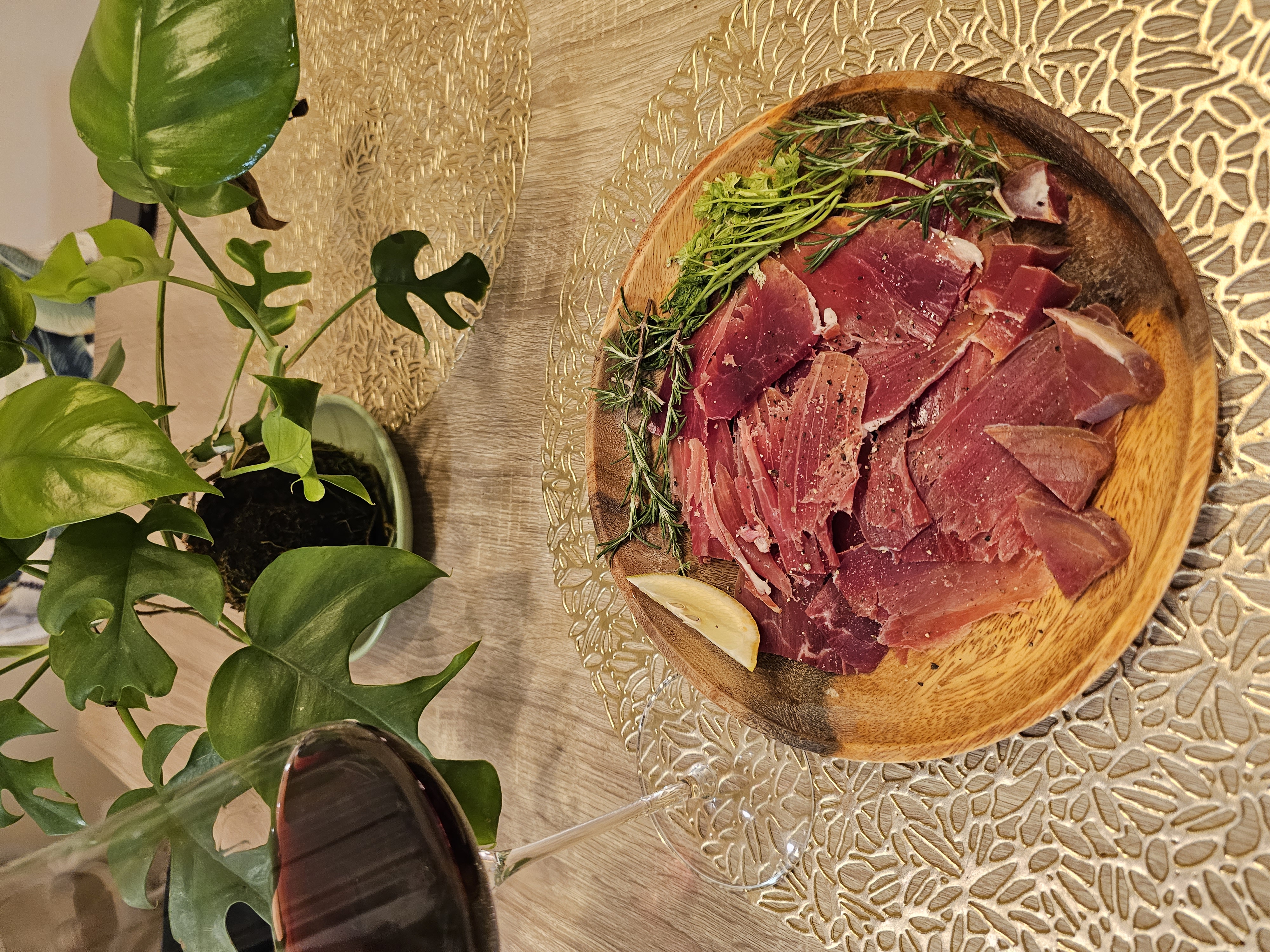 1日目はフレッシュなカットそのものを主役に、ワインといただきました。2日目は、保存方法に書いてあった方法でラップを巻いて冷蔵庫で保存しておいて、自家製サラダといただきました。