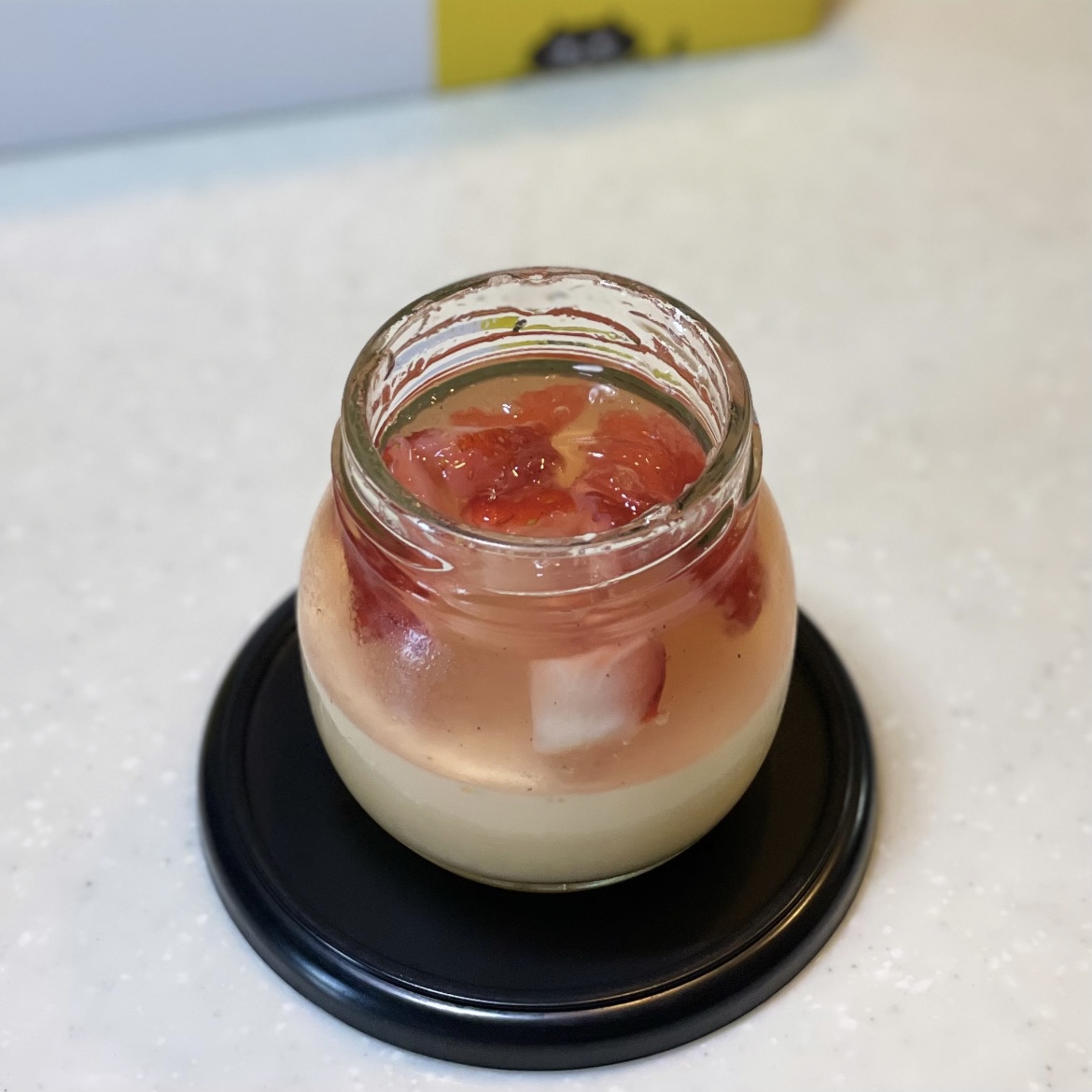 上のジュレはイチゴの果肉がたっぷりで嬉しいです!