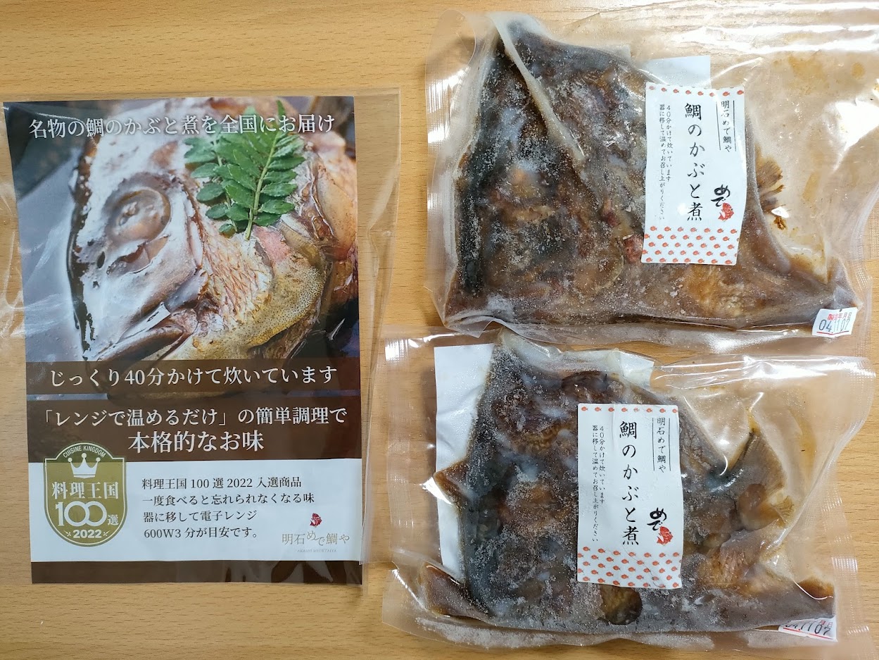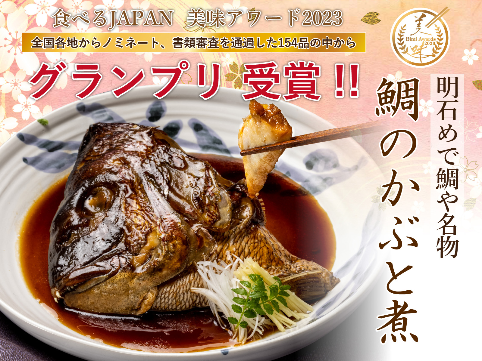 書類選考を通過した154点の中から、グランプリ、準グランプリ、特別賞を含む83品が認定され飲食店がコロナ禍で始めた通販商品、明石めで鯛や(兵庫県)「名物鯛のかぶと煮」がグランプリを受賞。