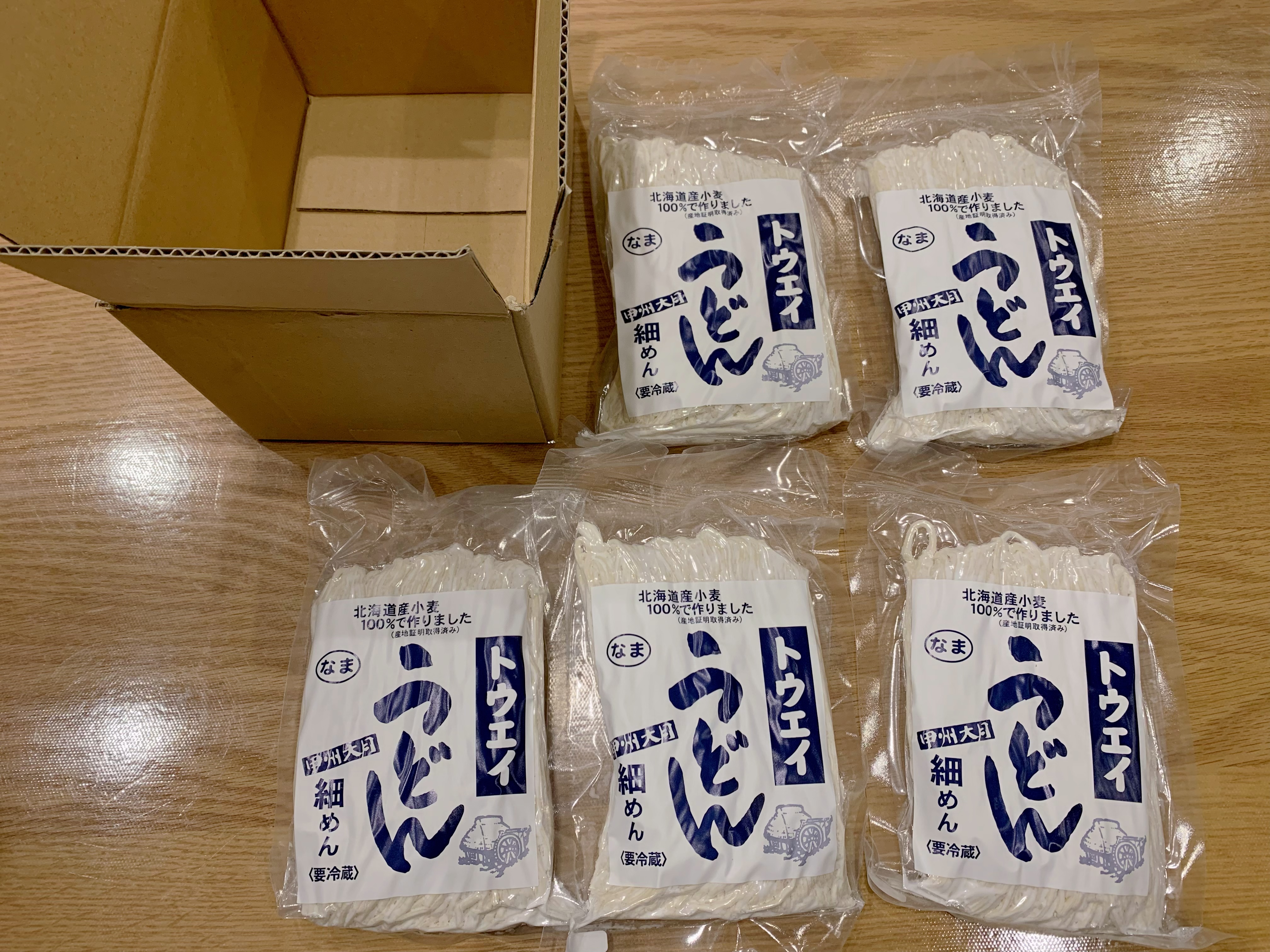 ガス真空で密封しているため、見た目はうどんなのにカチカチとなり、スーパーでよく見る生うどんのような美味しそうな見た目ではありませんが、これこそ添加物は必要最低限で、保存料を使っていないなによりの証拠なのです。