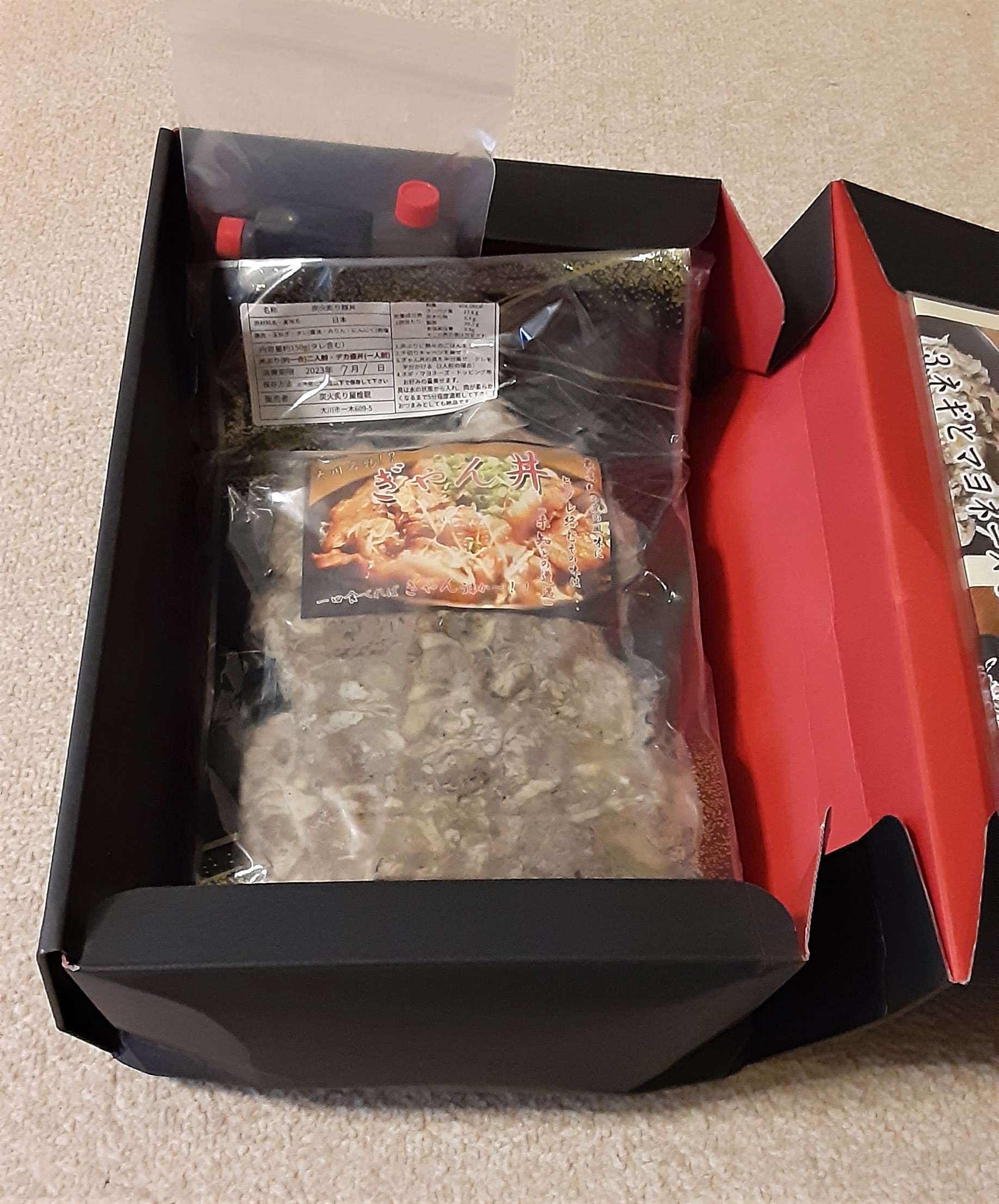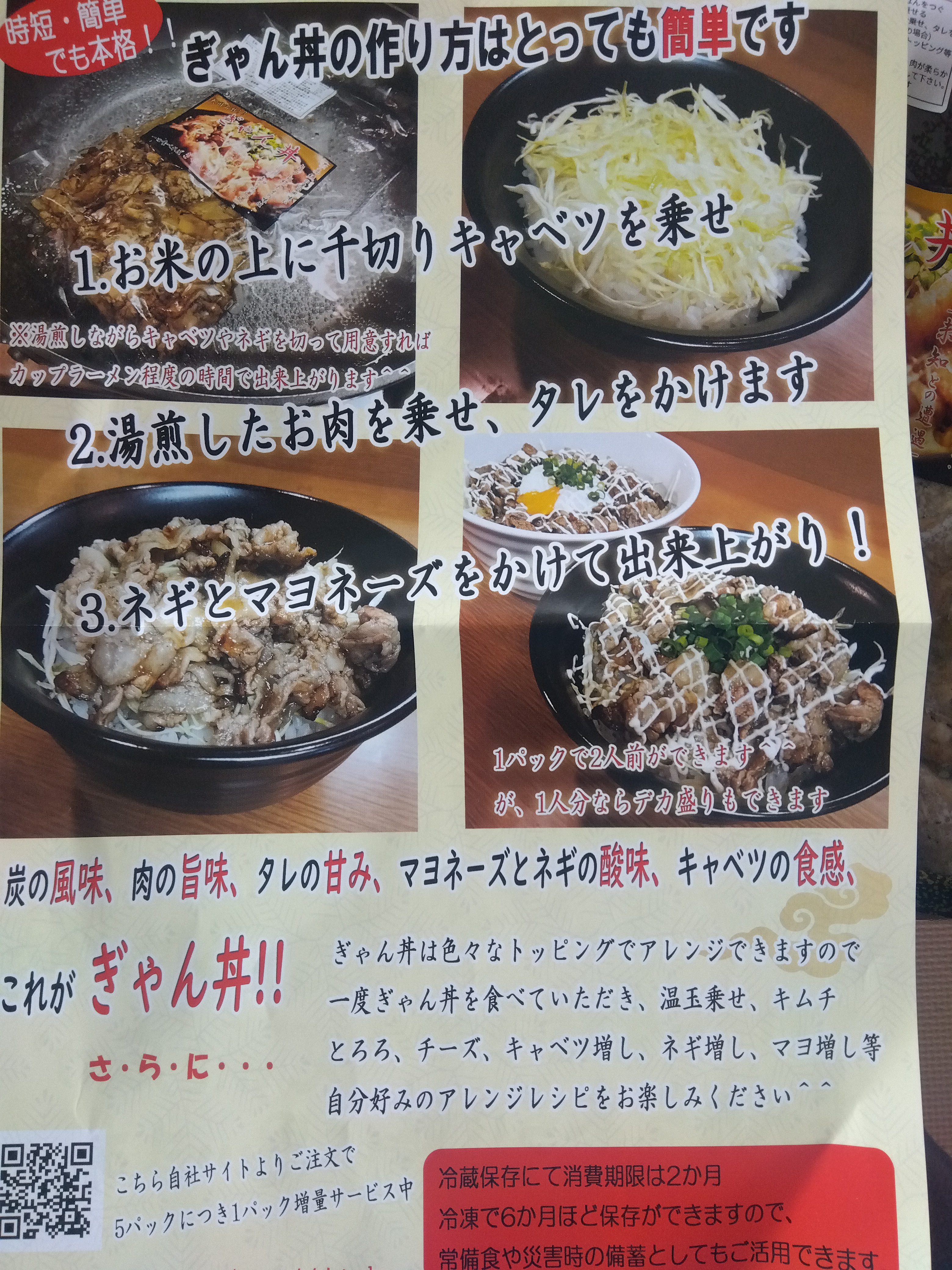 ギャン丼、説明の紙、タレそれぞれが袋に入っており清潔感があり、お店の方が大切に発送されているのを感じました。