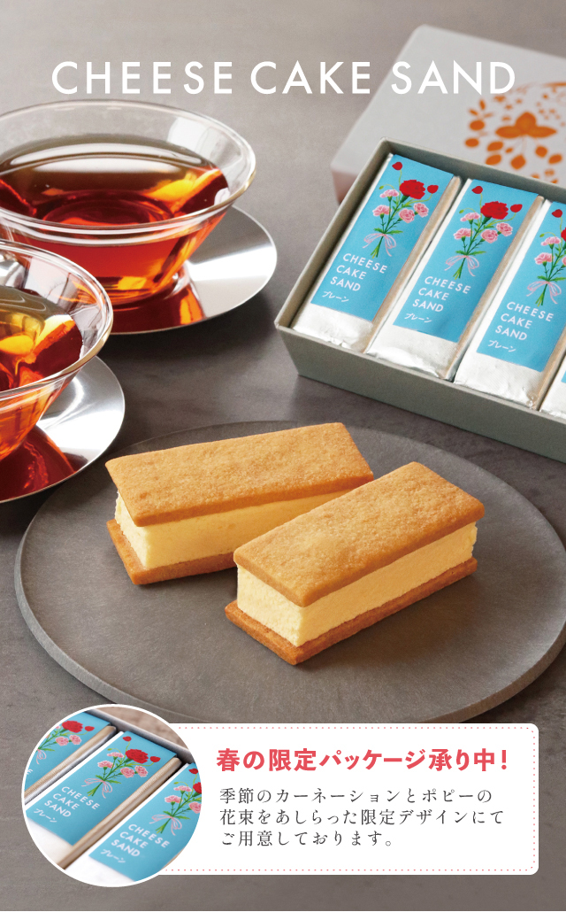 ※チーズケーキサンド は、〈プレーン〉味の他にも季節ごとに限定フレーバーをご用意しております。