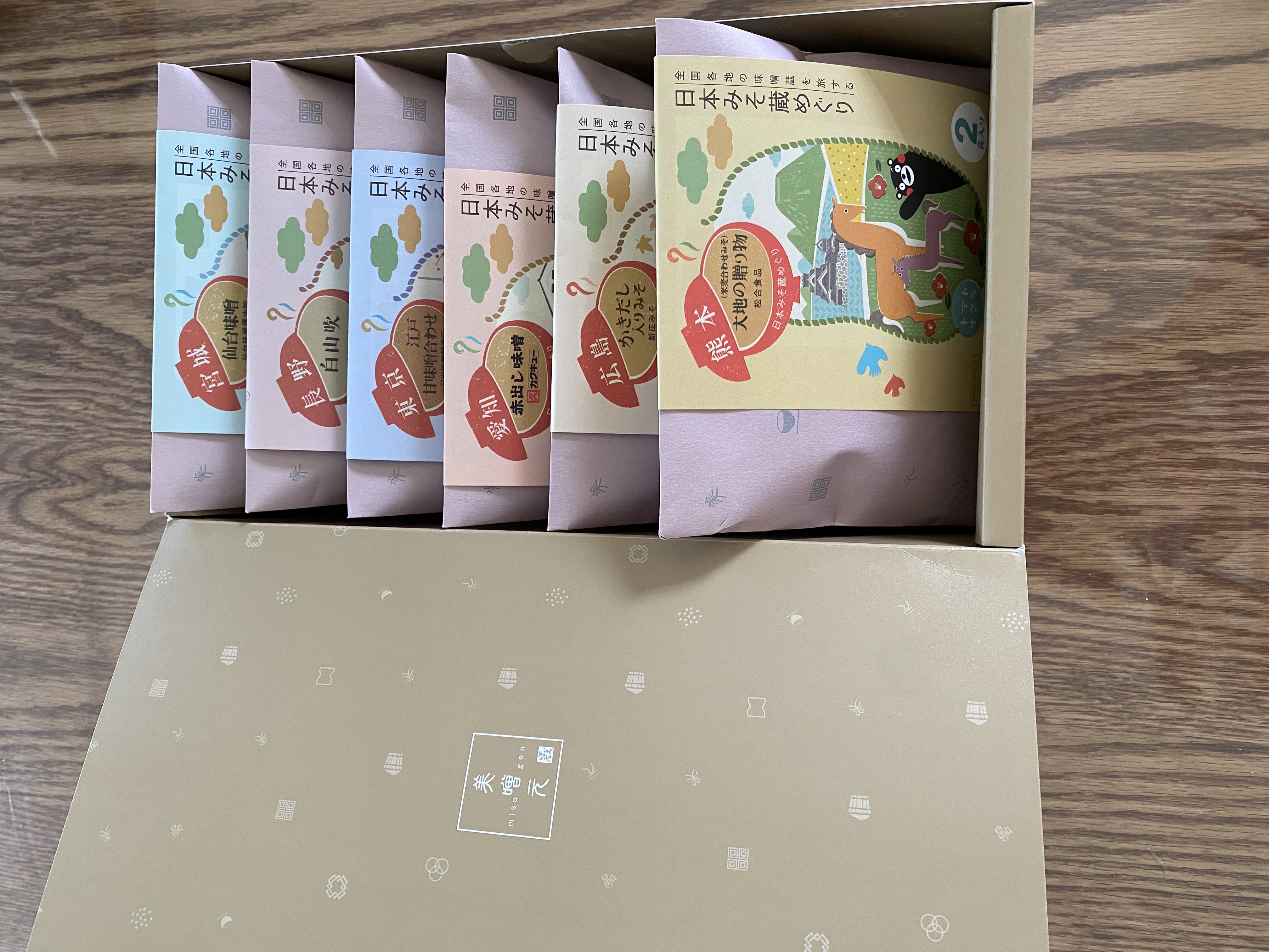 日本各地の味噌を使った味噌汁専門店の「味噌汁」です。宮城県・仙台味噌醤油を使用した「仙台味噌」、東京都・日出味噌醸造元の「江戸甘味噌合わせ」、長野県・山吹味噌を使用した「白山吹」など6種セット。お湯注げば手軽に郷土の味を楽しめます。地域にちなんだイラスト入りのパッケージが印象的な商品。専用ボックスに入って届くので、自宅用だけでなく贈り物にもおすすめです。