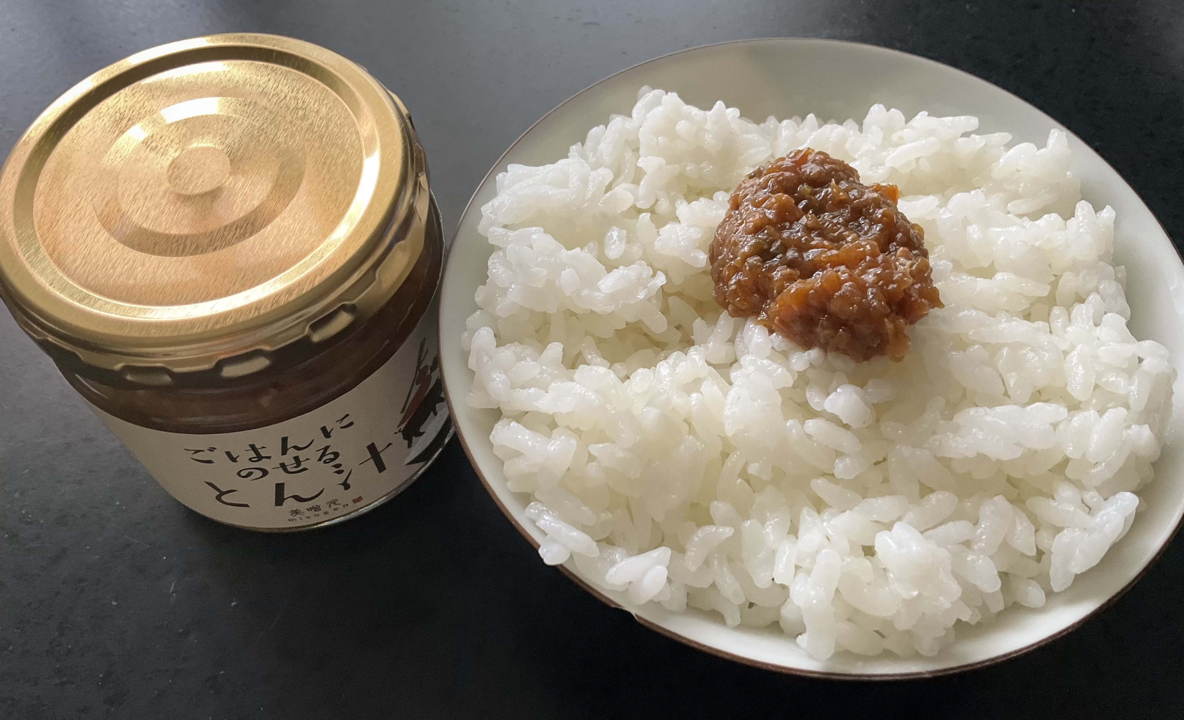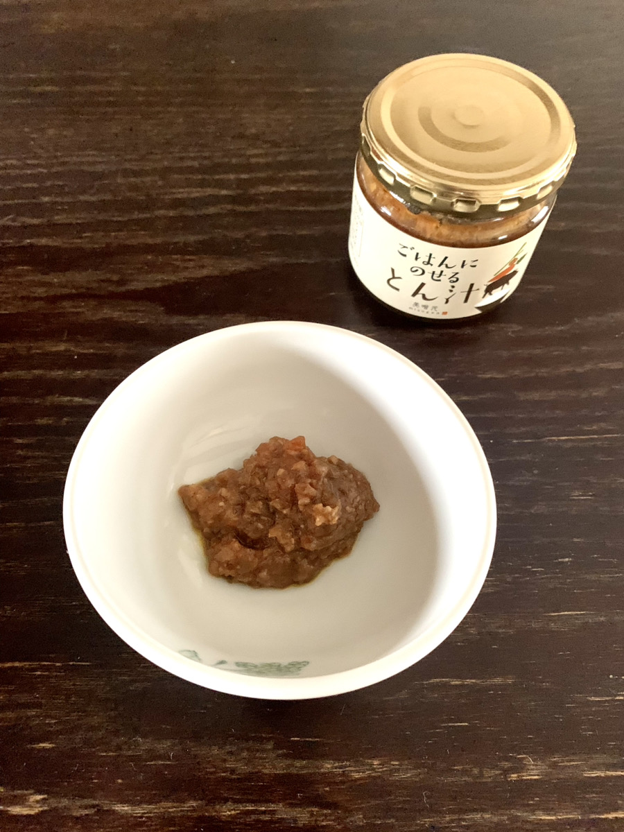 ごはんにのせるとん汁は豚肉とたまねぎのトロトロ味噌汁に生姜を効かせて肉味噌にした品物。