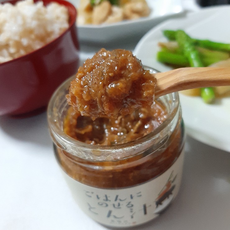 凝縮した豚の旨みと玉ねぎの甘みがつまった、とろとろの豚汁のような味わいの「ご飯のお供」です。じっくりと煮込まれた豚肉と玉葱に、アクセントの生姜を合わせた「おかず味噌」。炊き立てのごはんに乗せて楽しむだけでなく、おにぎりの具材や、冷奴、野菜スティック、焼肉などにトッピングするのもおすすめです。常温保存可能で、賞味期限も365日と長い商品が2個セットで届くので、ストック食材としても便利です。
