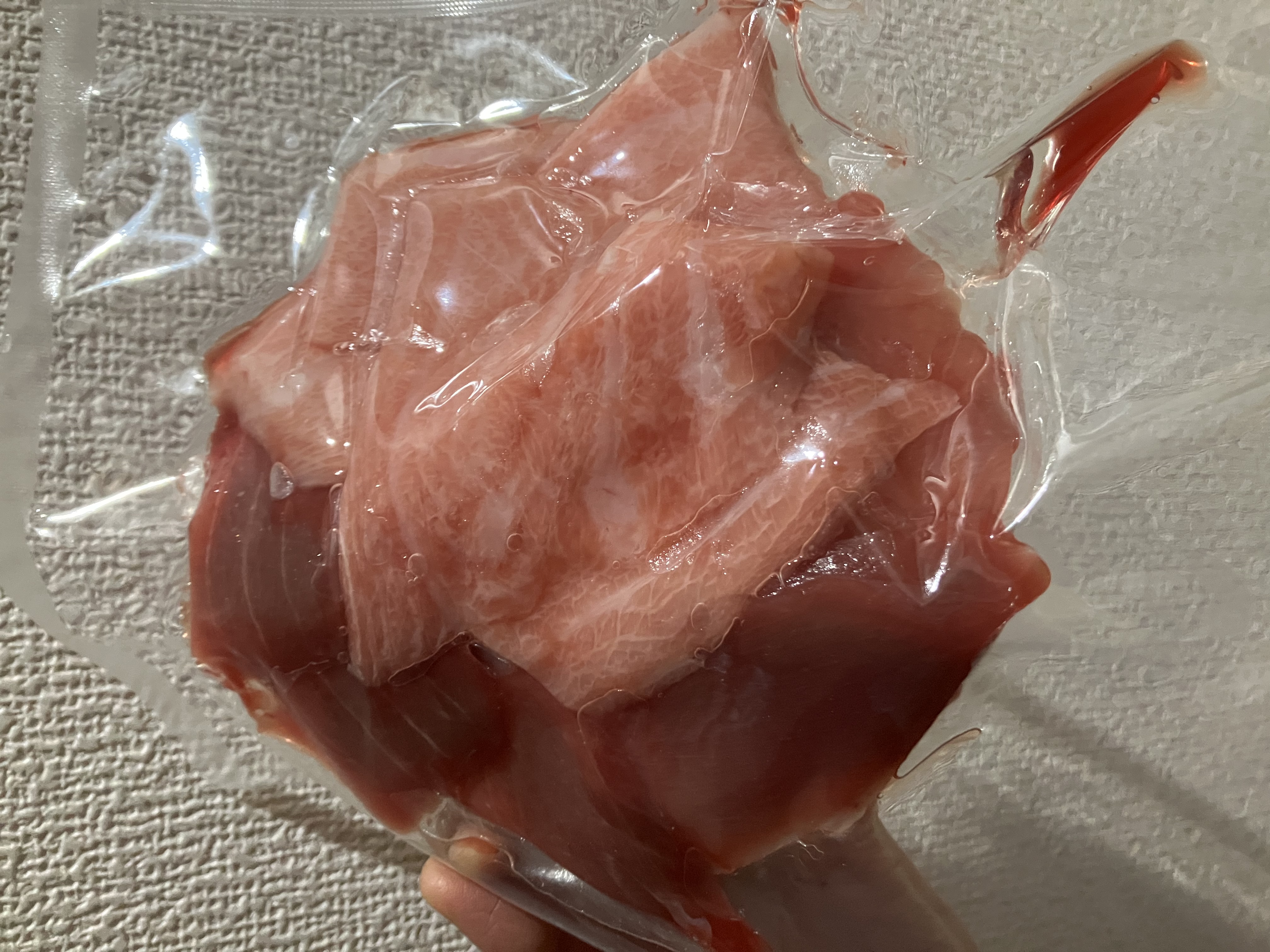 赤身、中トロ、大トロの食べ比べをこの丼の中で楽しめます。臭みのないしっとりとしたとっても美味しいクロマグロ。お店で食べるようなまあまあなお値段ですが、この味をおうちで簡単に食べられるのが嬉しいです。ちょっと甘めの醤油も添付されています。事前に見ていたお写真よりも一切れの厚さが薄いなと感じましたが、それでも大満足な一品でした。