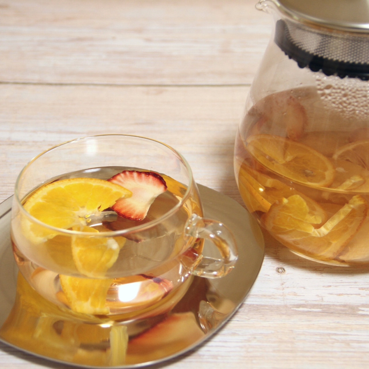 瀬戸内(岡山・広島)産フルーツ5種の半生食感「ドライフルーツ」です。他の商品を制作する過程で生まれた商品なので、形は不揃いであるものの品質は変わりません。そのまま食べるだけでなく、「フォンダンウォーター」として楽しむのがおすすめ。「フォンダンウォーター」とは、韓国発のドリンクで、 ドライフルーツを水の中にいれて浸け込んだ水、または炭酸水のこと。「フードロス削減」にも繋がる商品で1つ1つ形の個性を楽しみながら、ジューシーな半生食感を味わえます。
