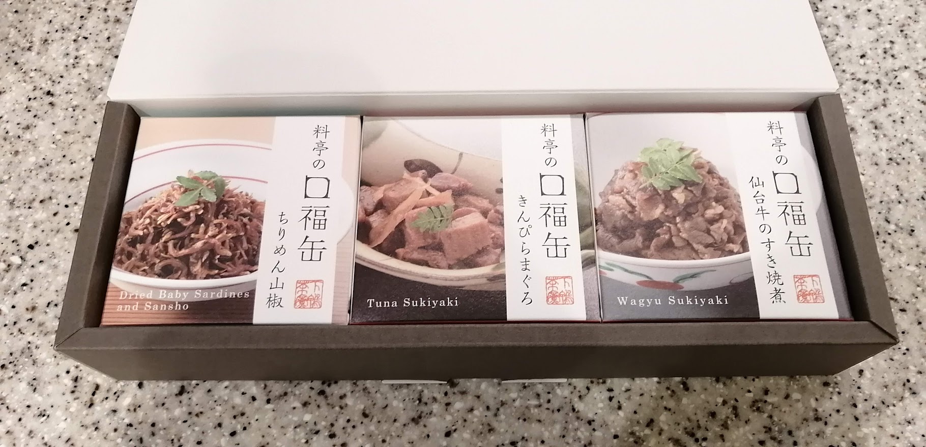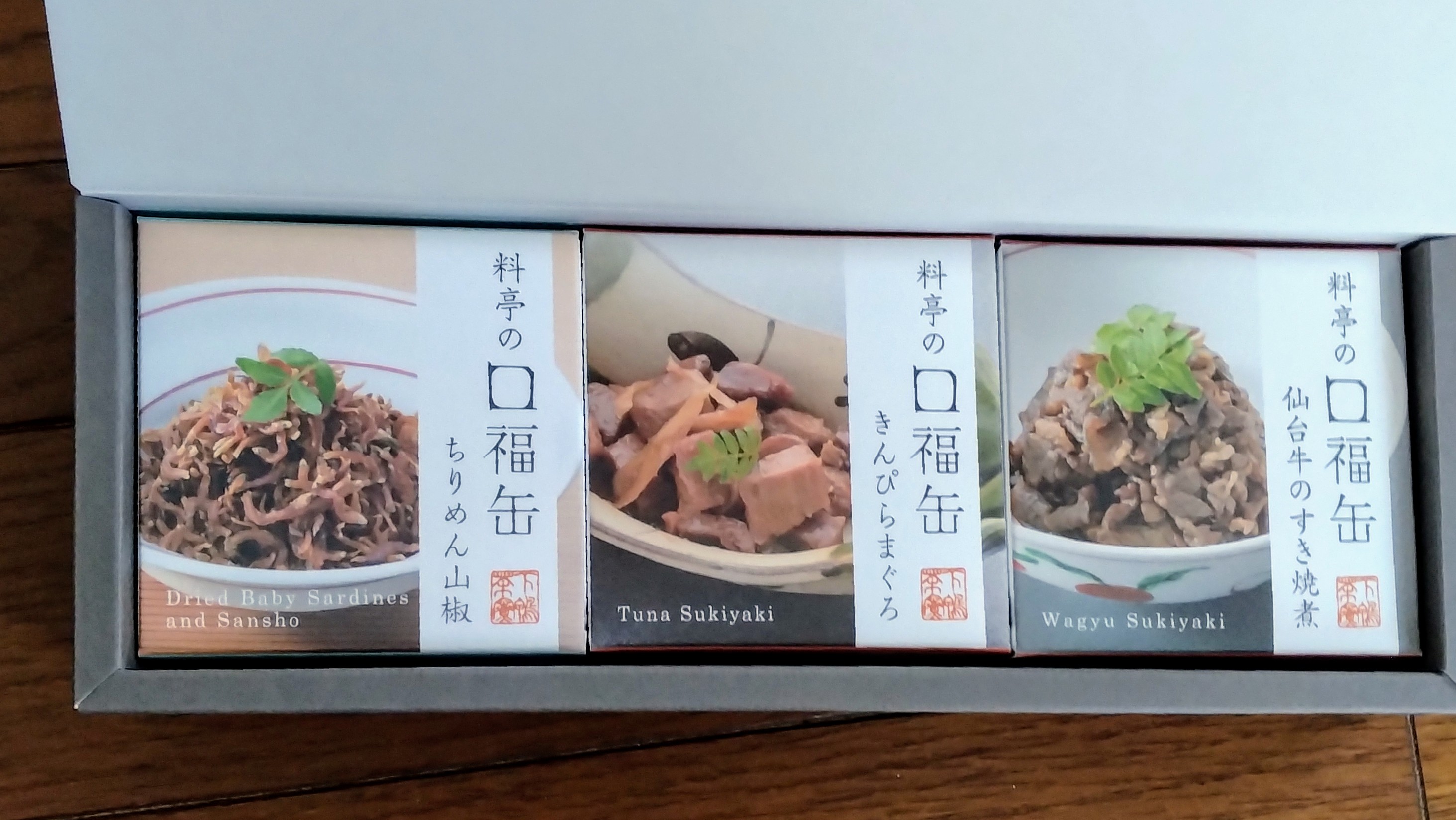 料理人がひとつひとつ丁寧に味付けした「惣菜の缶詰」です。保存性に優れ、これまでとはまた一風変わった味わいに仕上がっています。国産の良質なちりめんじゃこ・実山椒を使用し、職人が昔ながらの手法で上品に炊き上げた「ちりめん山椒」、まぐろと牛蒡をあめ色になるまで丁寧にじっくりと炊き合わせた「きんぴらまぐろ」、仙台牛を厳選した砂糖と醤油だけでじっくりと時間をかけて炊き上げた「仙台牛のすき焼煮」の3種。「口福缶」の名の通り、ひとくち食べれば、美味しさと共に口の中いっぱいに幸福感が広がる缶詰です。シーンを選ばない上品なパッケージに入って届くので、贈り物にもおすすめです。