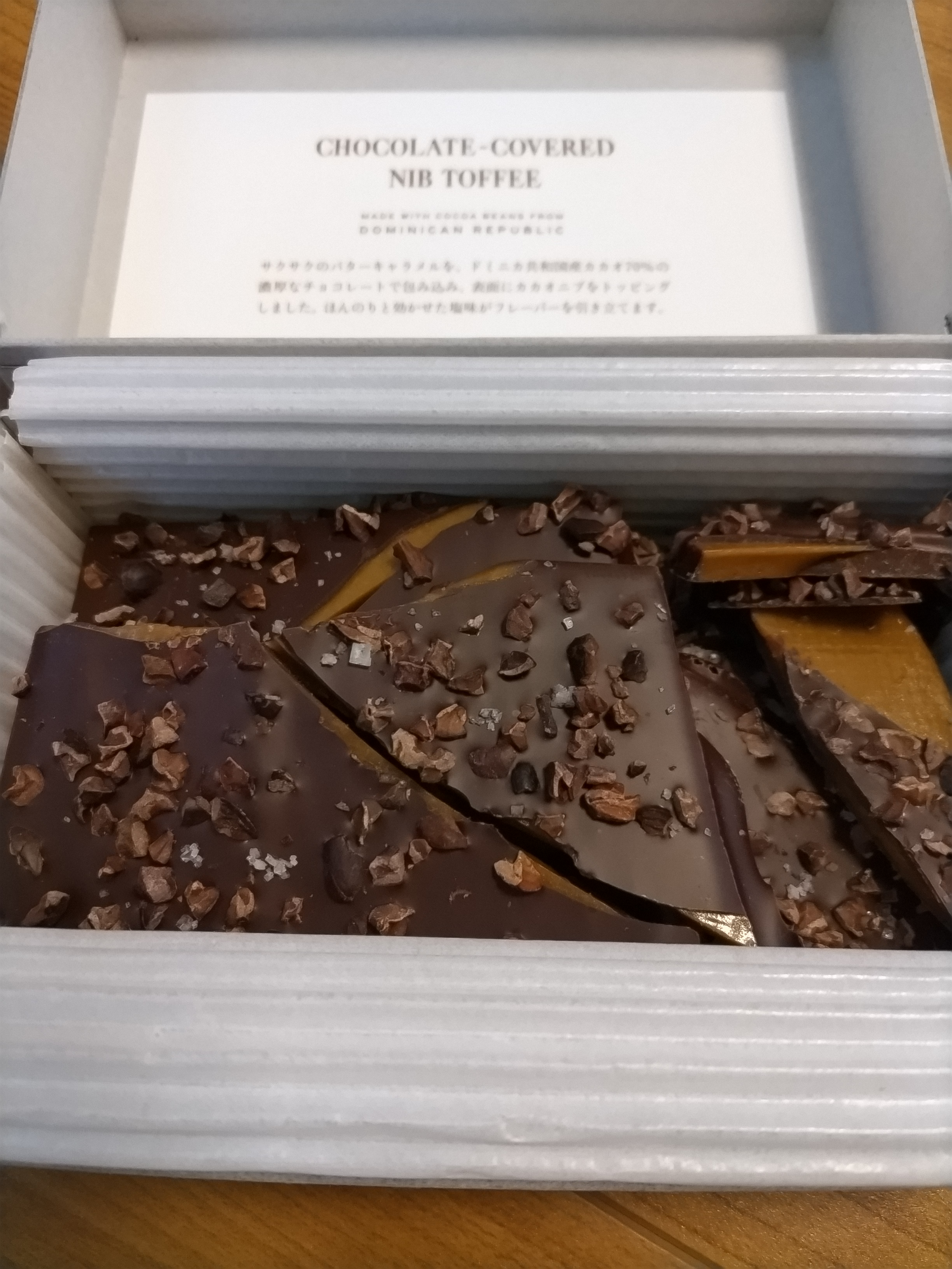 クラフトチョコレートの専門店の、このニブトフィーチョコレートは、食感もサクサクしていて、甘く濃厚で、ウイスキーやコーヒー、紅茶にもよく合います。