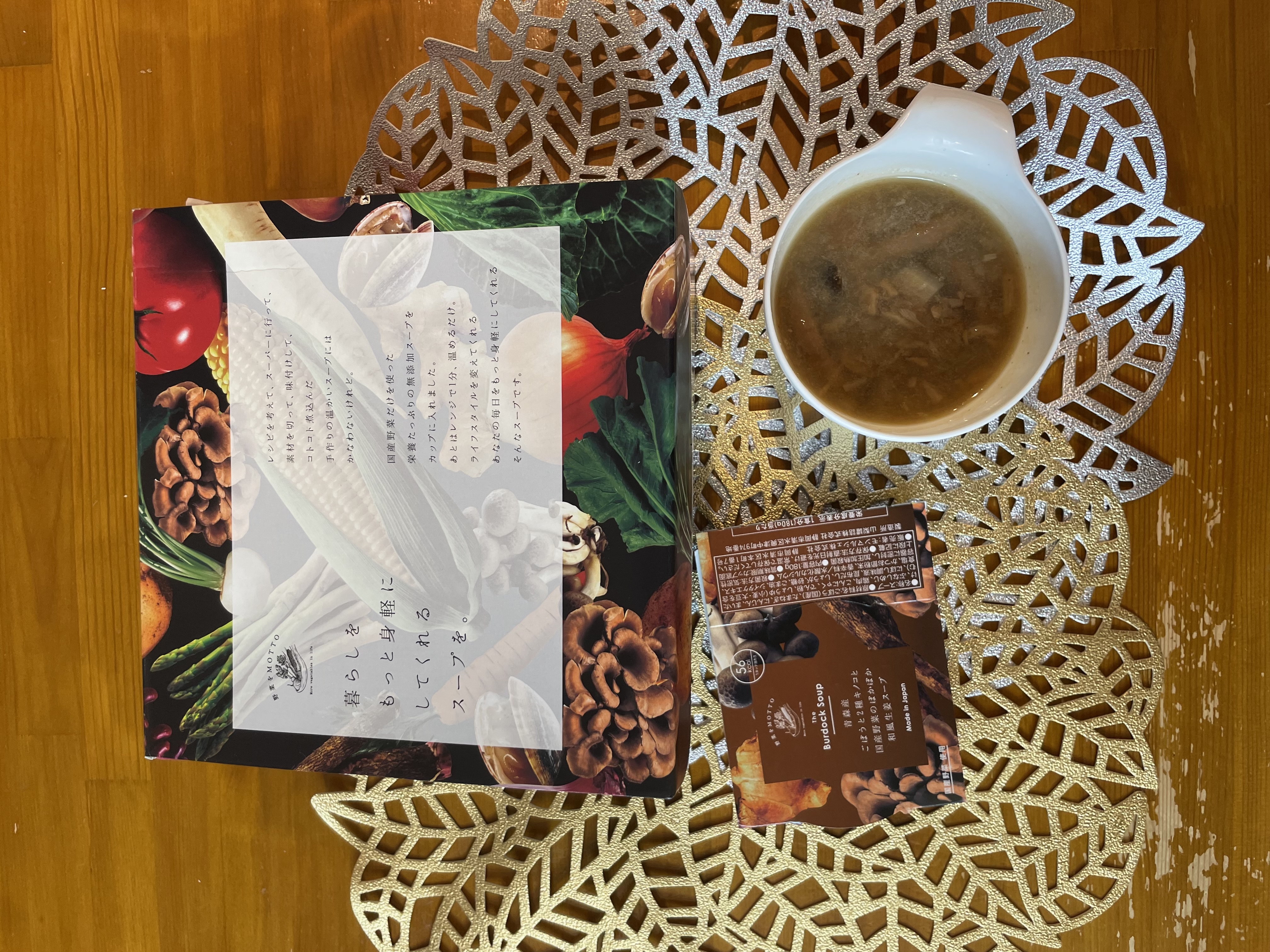 青森産ごぼうと2種キノコと国産野菜のぽかぽか和風生姜スープ