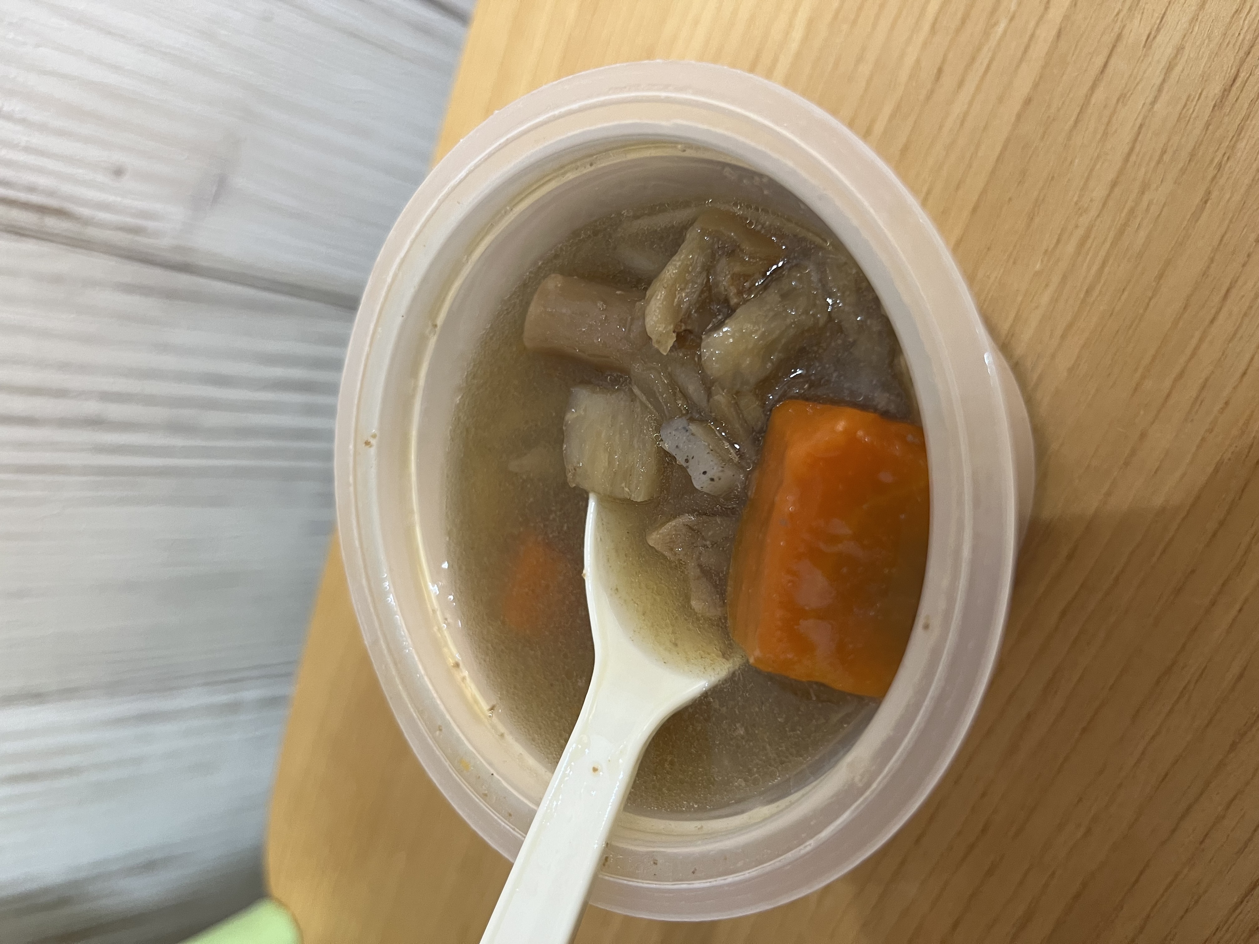 さらに個人的に驚いたのがショウガ!ショウガのスープというと、味がするな~くらいのものが多いのですが、こちらのショウガはシャキシャキ感がしっかり感じられる!商品名に生姜と書いてあるだけあるなと思いました。