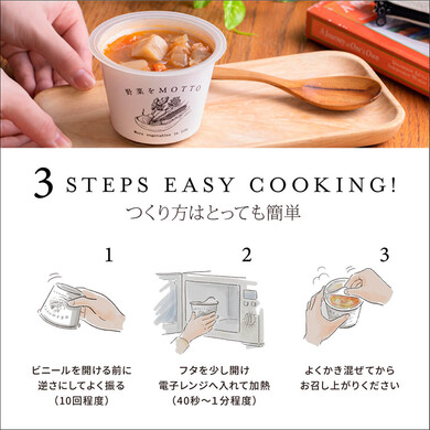 温めたら、容器に移さずカップのままお召し上がりいただけます。