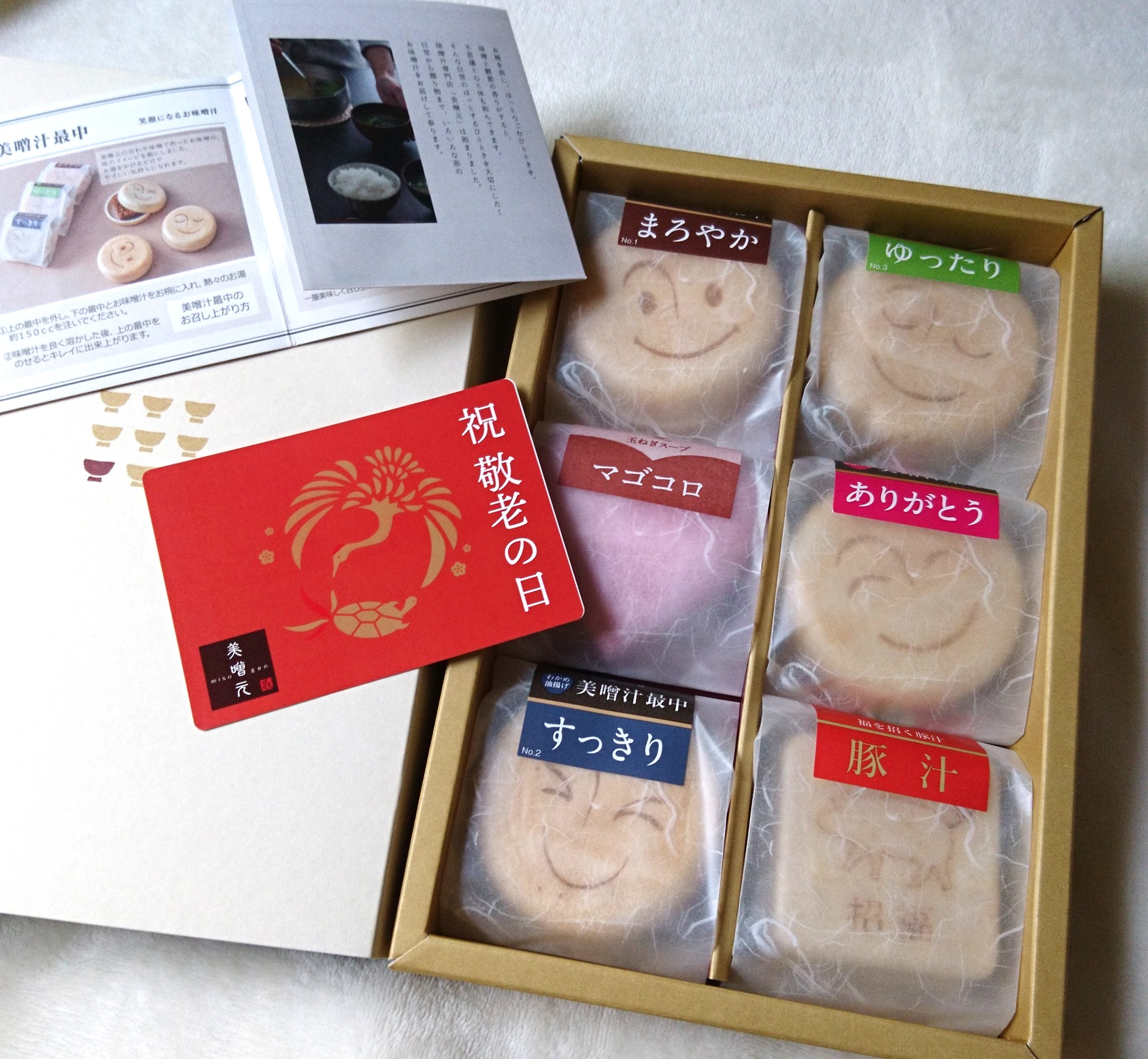 お湯を入れるだけで美味しい味噌汁が飲めるのはもちろん、お顔の最中をお湯に浮かせて、目でも楽しめる素敵なお味噌汁セットです☆