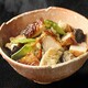とうふ料理店名物の油揚げをたっぷりと使用した具沢山の「五目飯」です。醤油だれに漬けて強火で香ばしく焼いた国産若鶏や色とりどりの野菜、料理人こだわりのブレンド米と共に自家製だしでふっくらと炊き上げました。鹿児島県産鰹節の本枯節、北海道産の真昆布から丁寧に引いた合わせだしが、味の決め手です。冷凍で届くので、温めるだけで、レストランクオリティの味が自宅で楽しめます。