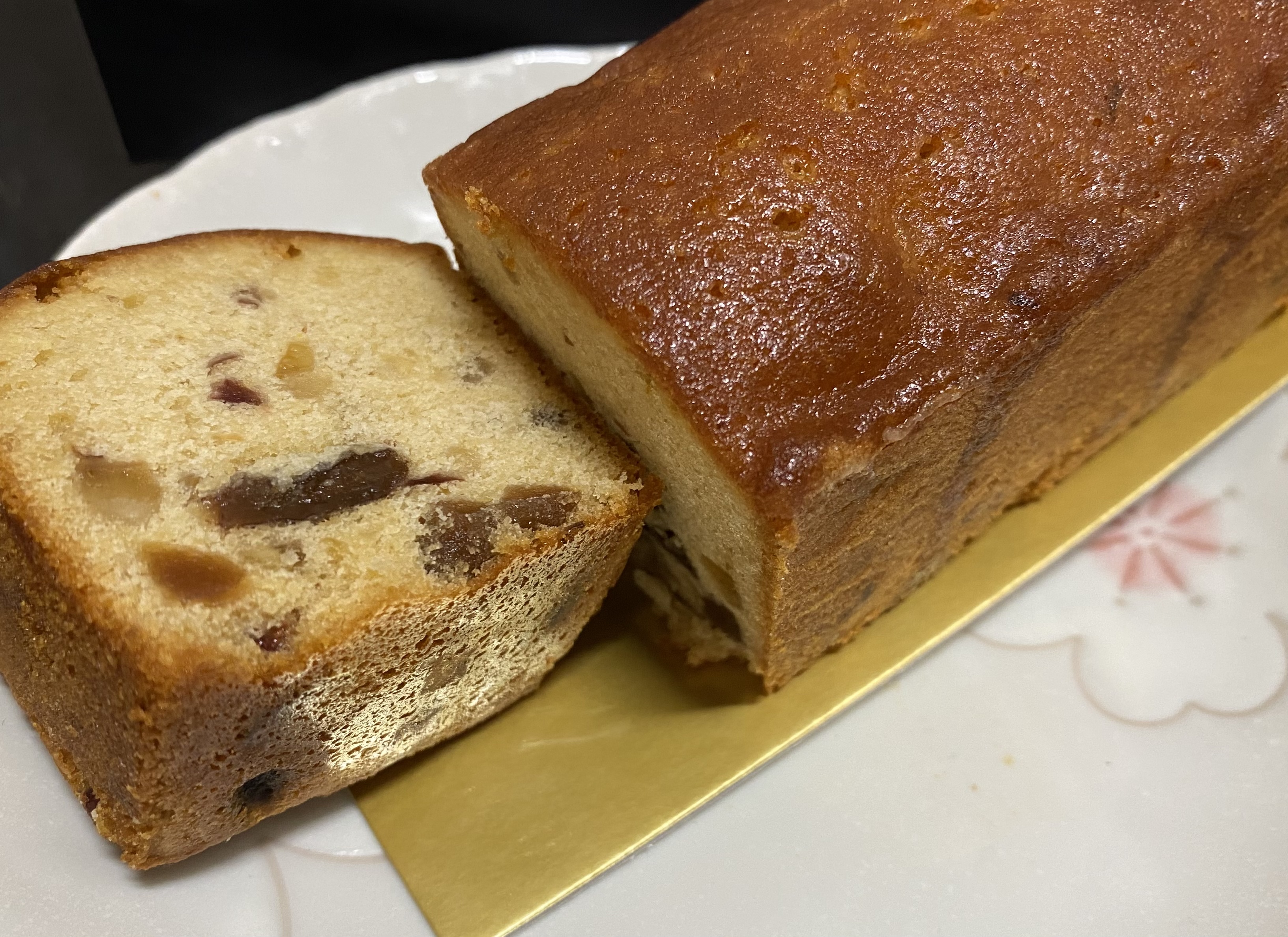 「フルーツケーキ」はそれぞれ、洋酒に漬け込まれた、オレンジ・レモン・イチジク・レーズン・クランベリーなどが、たっぷり入っていて、香りの食感も最高。