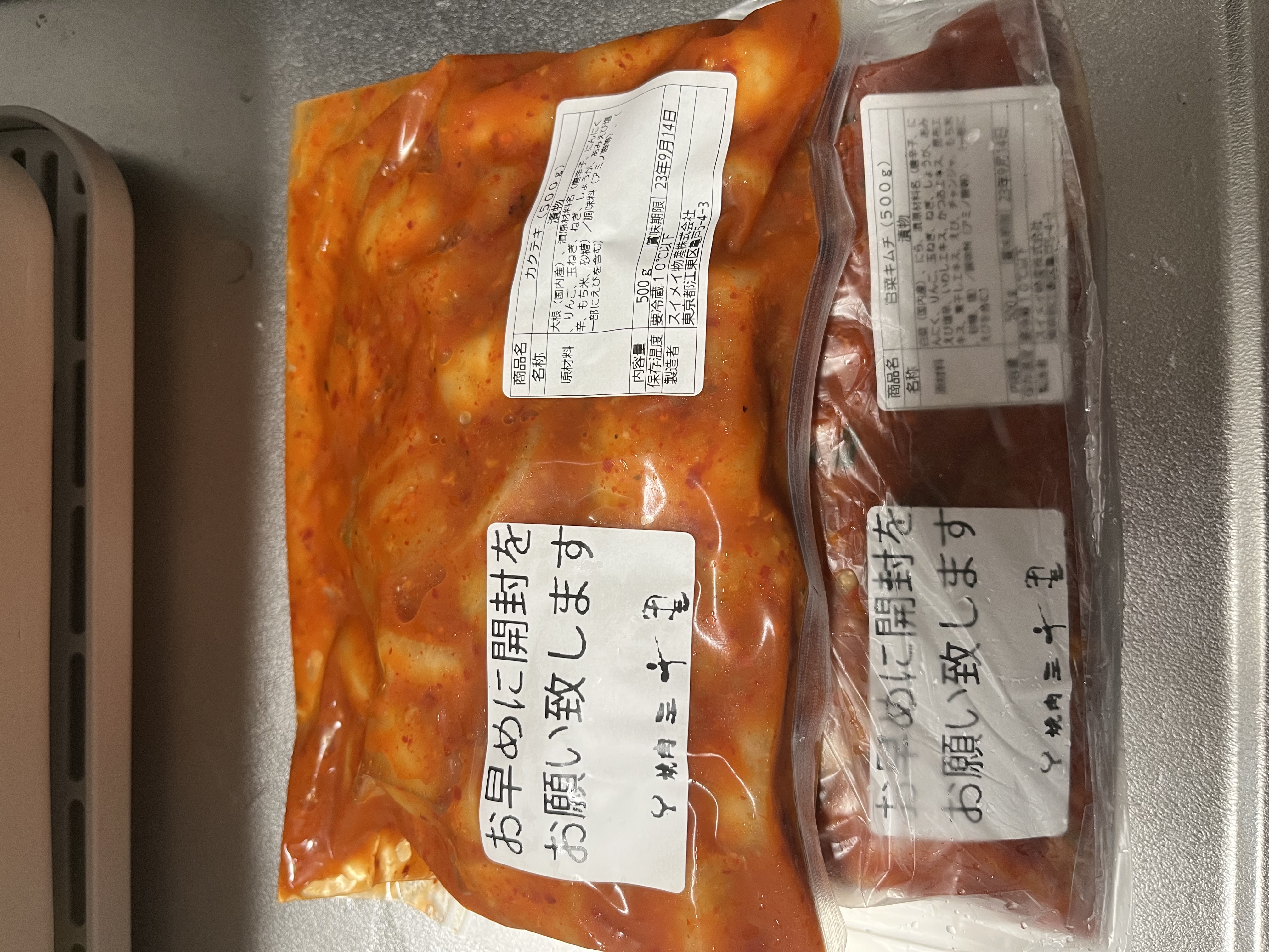 キムチは発酵食品ですので、商品が届きましたらすぐに真空袋から開封し深めのお皿などに移して下さい。