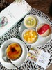 スペイン伝統のカタラーナを、イタリア風に冷凍した「アイスデザート」です。アイスクリームのようなひんやり感、パリパリのカスタードブリュレの良さを併せ持つ新食感スイーツです。キャラメル・苺・キウイ・パイン&マンゴーを合わせた4種フレーバーのセットです。冷凍状態では滑らかなアイス風、半解凍でスッと解ける口当たり、冷蔵解凍では濃厚なプリン風に味わいの変化を楽しめます。花のイラストが印象的なブルーのボックスに入って届くので、手土産スイーツとしてもおすすめです。