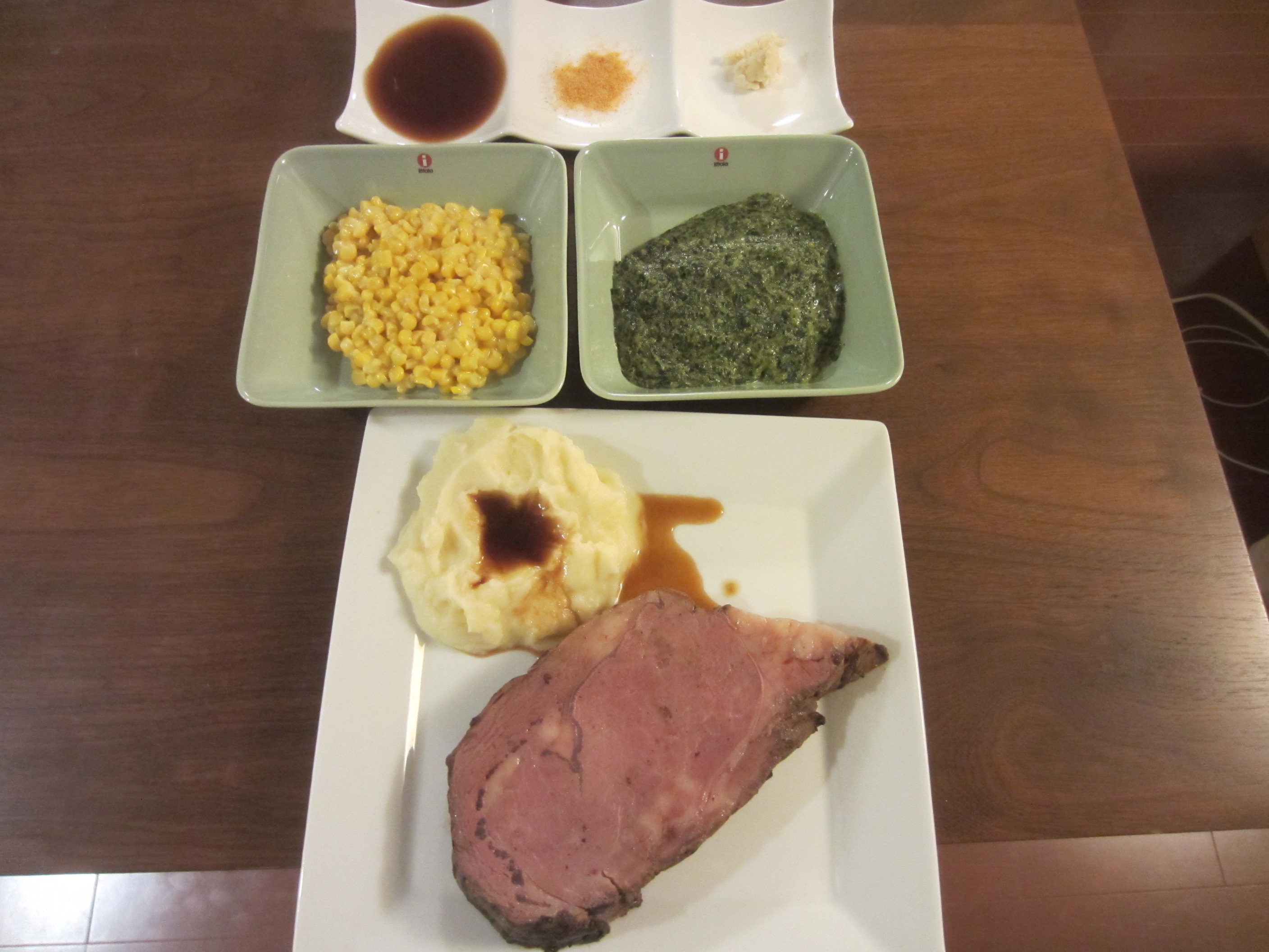 50℃の湯煎で20分という、何でもレンチンの時代にはやや手間のかかる調理法ですが、この時間さえもスパイスの一種。皿の上にプライムリブとアカンパニメンツが揃った時の眼福も味わいの大切な要素です。