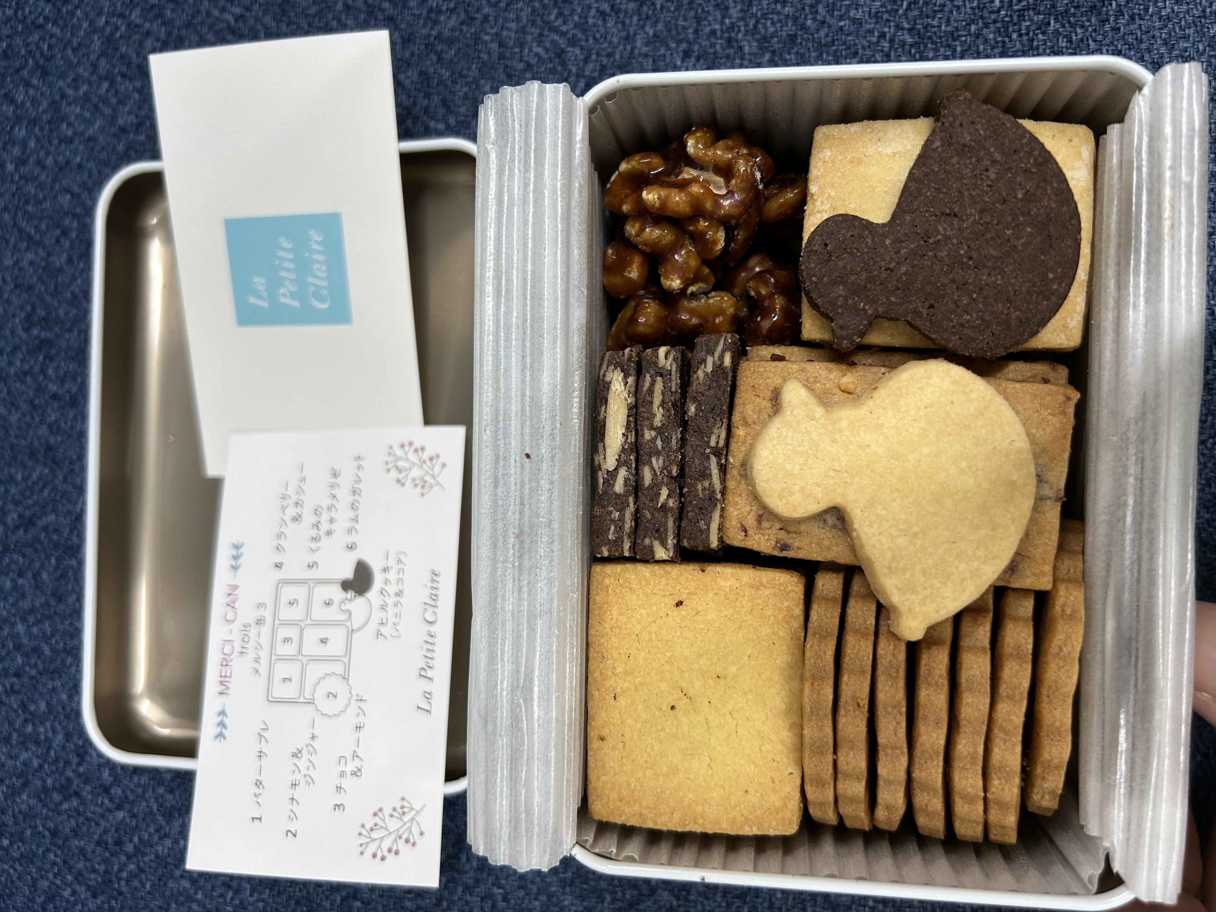 「メルシー缶3(トロワ)」は、スパイス入りの薄焼きクッキーとクルミのキャラメリゼが入った「メルシー缶」シリーズの第3弾です。