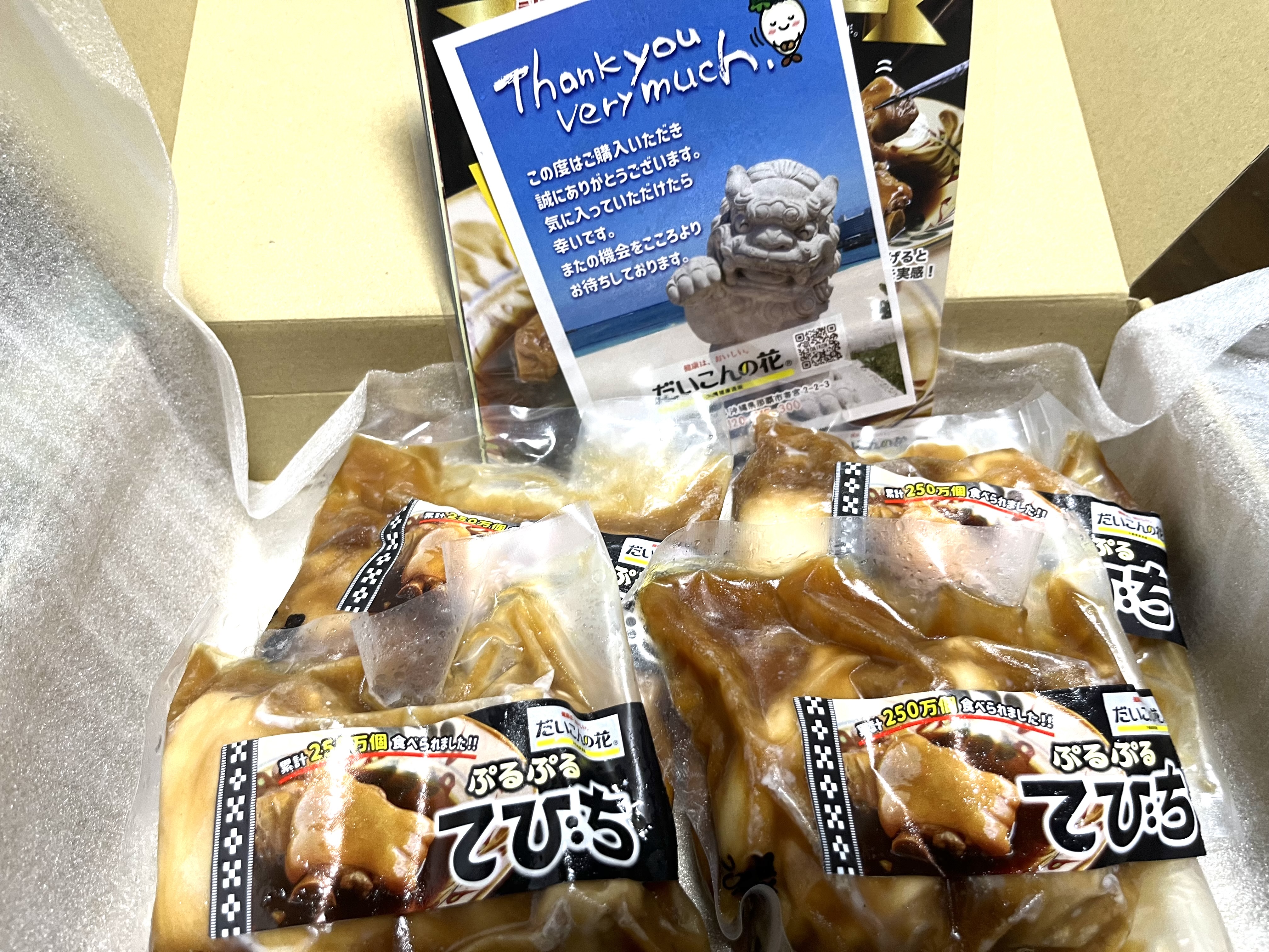 沖縄料理が好きで、ちゃんぷるー系はもちろん、ラフテーやソーキ肉も作ったりするのですが、てびちだけは下処理も大変そうで、自宅でトロトロに煮込める自信もなく、、、ずっと美味しいてびちを購入したいと思っていました。