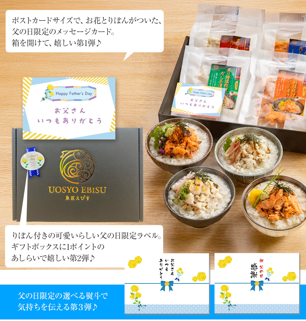 父の日限定のシール・メッセージカード・メッセージ熨斗(2種)が全て無料でご利用頂けます!