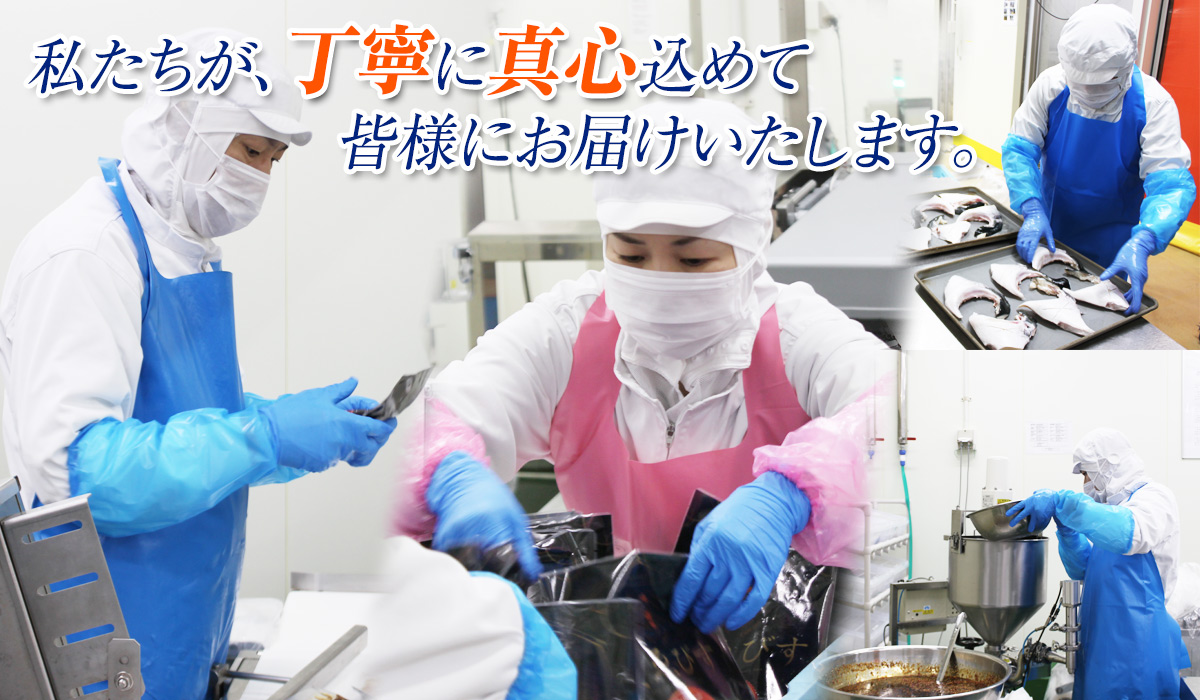HACCP管理に基づいた衛生基準の認定を受けた工場でお魚の加工・製造を行っています。