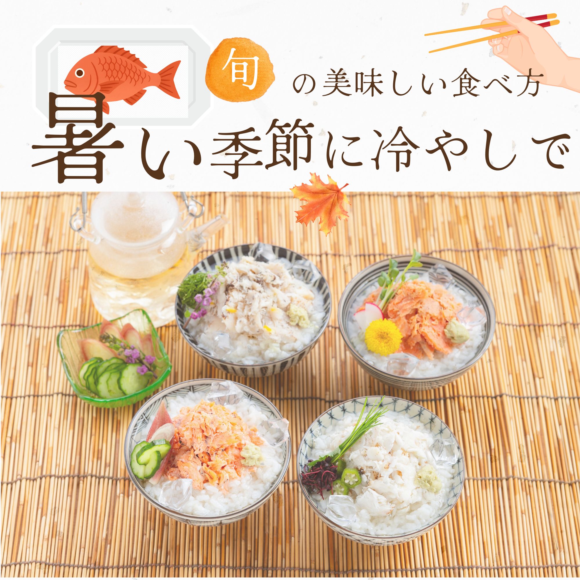 年々、暑い季節の期間が延びている気がしますがそんな時には『冷やし茶漬け』がおすすめです!