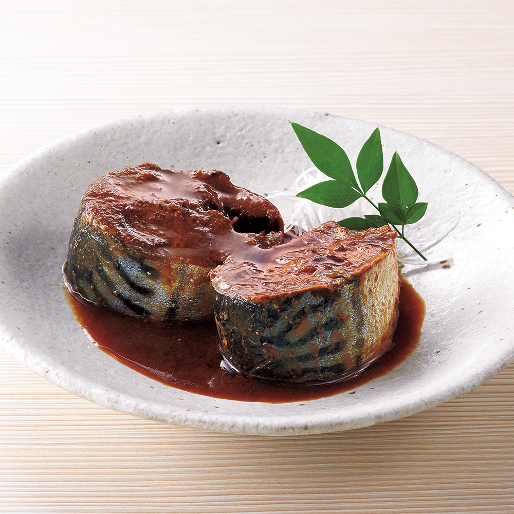 旬の秋に漁獲されたノルウェー産の大ぶりなさばを使用。砂糖は不使用。ちくま味噌製造の東京の伝統調味料「江戸甘味噌」に、現存する最古の味醂蔵が造る「九重櫻」、高知県産の生姜だけでほんのり甘く、厳選した調味料で試作を重ね、納得の味に仕上げました。