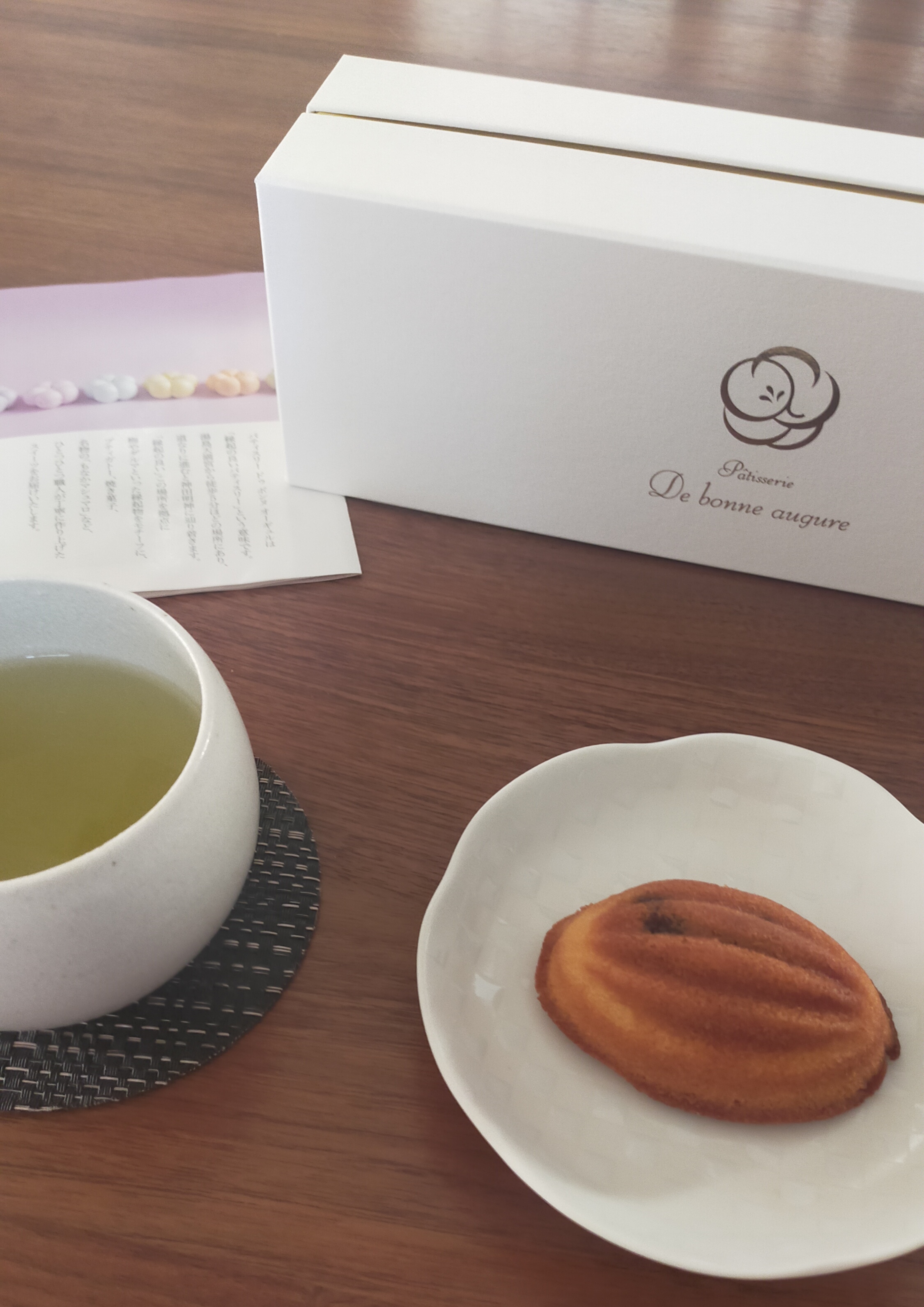 生地には白餡が練り込まれていて、中央には小倉餡が入っています。パウンドケーキの素材がベースの焼き菓子ですが、日本茶とも合いそうなので、今日は日本茶(緑茶)と一緒にいただいてみることに。