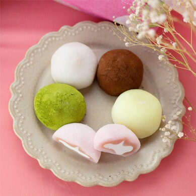 きめ細やかな国産もち粉を使ったやわらか餅、軽やかなクリームそして原材料にこだわった餡のハーモニーがたまらない「クリーム大福」です。いちご果汁を練り込んだあんこの甘酸っぱい味わいと香りが秀逸「いちごクリーム大福」、角切りのリンゴの果肉を混ぜ合わせ味、香り、食感も楽しめる「りんごクリーム大福」、バンホーテンのココアパウダーをまぶしカカオ豆のほろ苦さとチョコレート餡の甘味とクリームのまろやかさが特長の「チョコレートクリーム大福」、京都山政小山園の抹茶粉を使用しているので抹茶のほのかな苦みと香りを感じる「抹茶クリーム大福、レモンの果汁を練り込んだ爽やかな餡とクリームの絶妙なハーモニー「レモンクリーム大福」の6種セット。訳あり商品で、簡易包装で届くものの味や品質に変わりはありません。個包装されているので、お配りスイーツとしてもおすすめです。