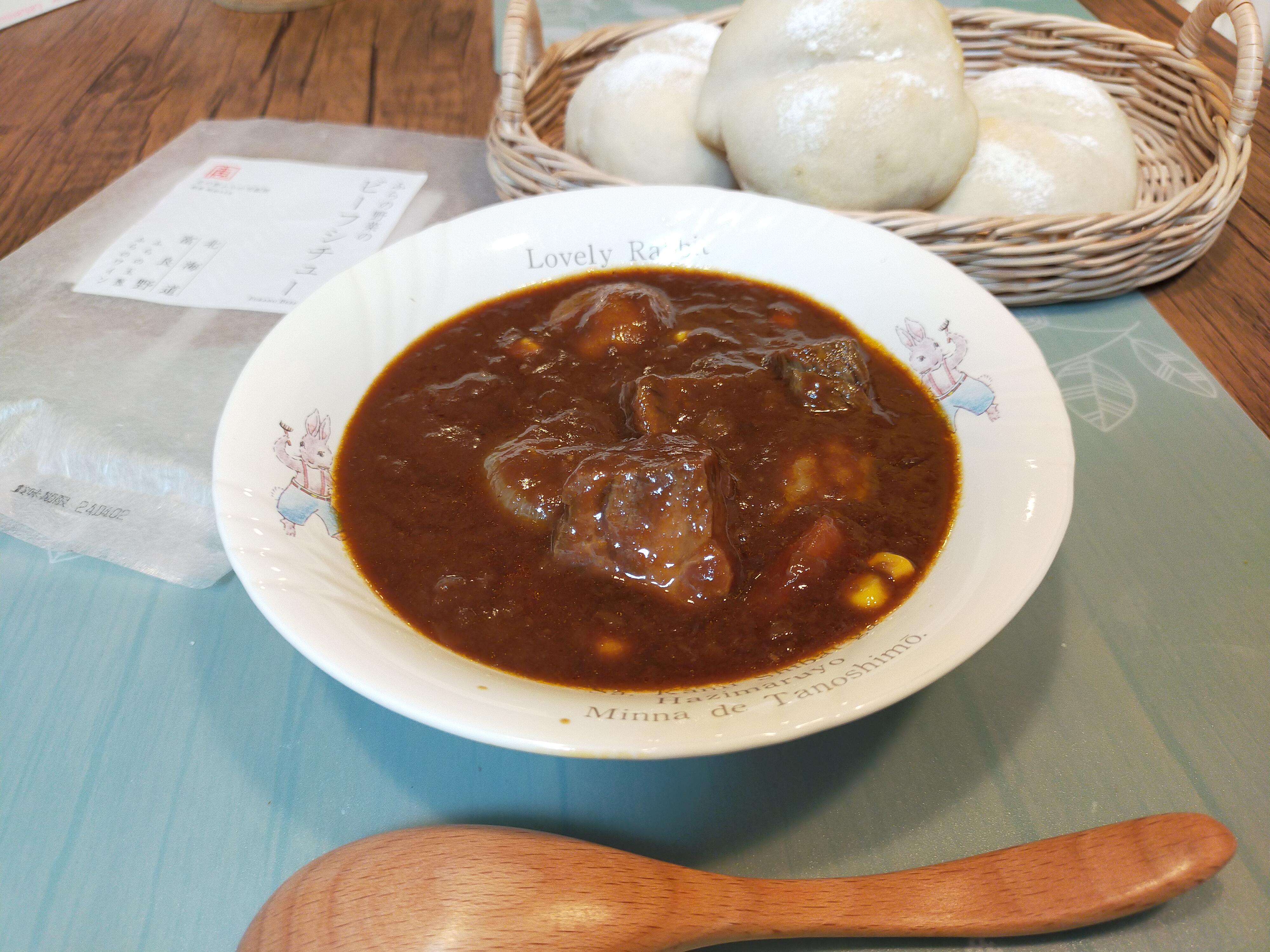 早速いただくと、とってもコク深く、家庭ではなかなか作れないような赤ワインとお肉、野菜の旨味が凝縮されたデミグラスな味。