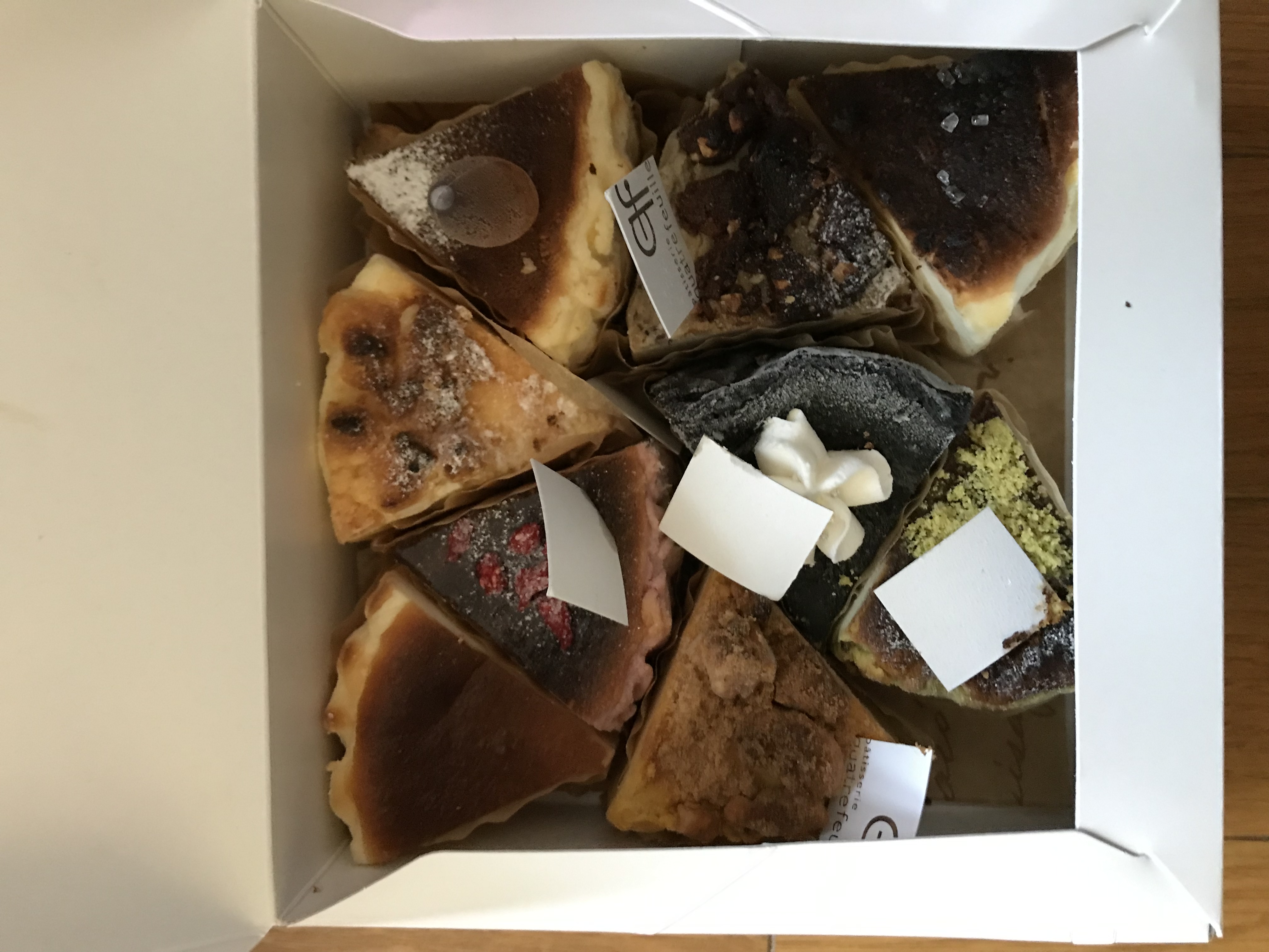 箱を開けた瞬間、目に飛び込んでくる個性豊かなチーズケーキたち!子どもたちも歓声をあげて喜んでいました。