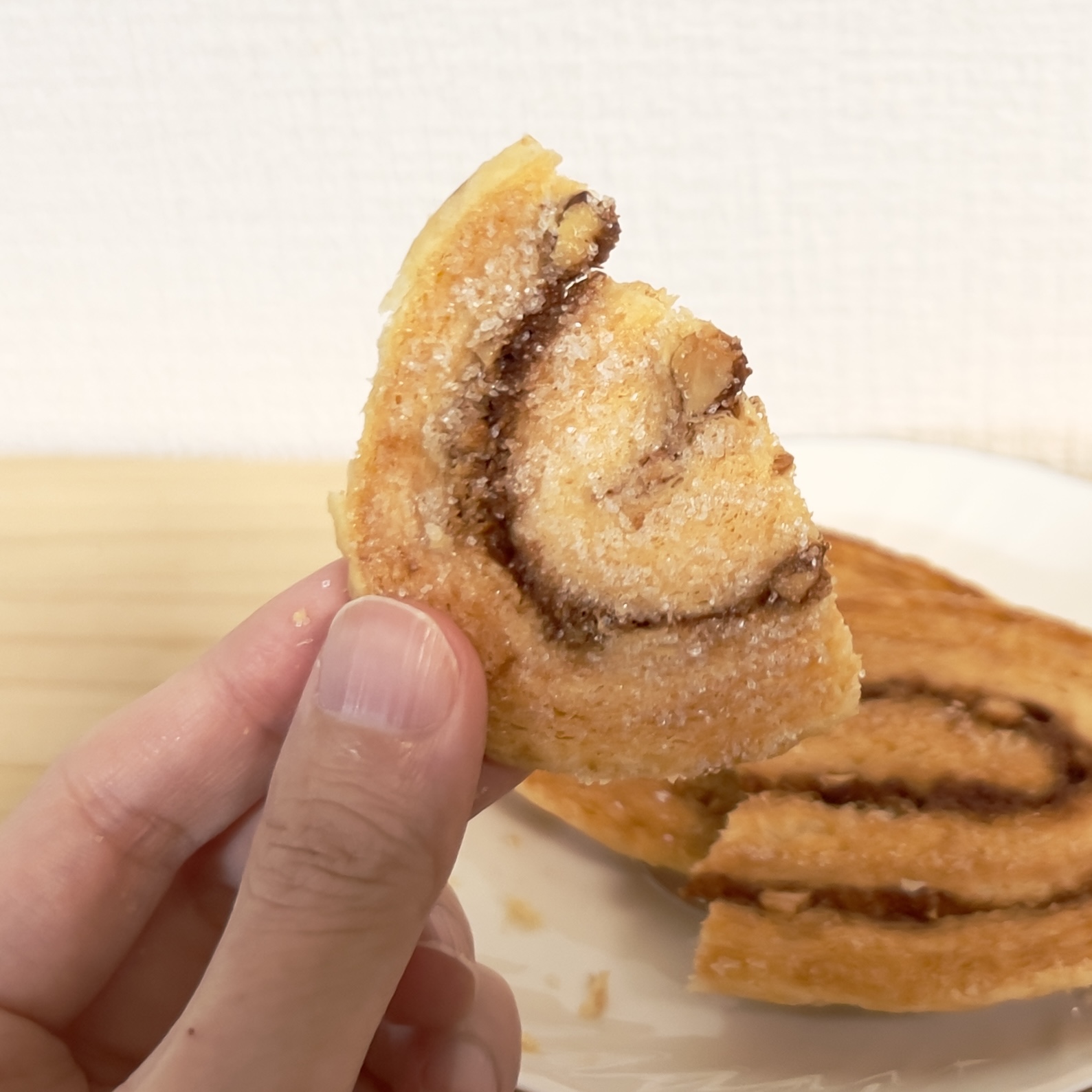 シナモンが効いたアーモンドパイの香りを楽しみながら、一口たべてシナモン風味を食べて感じる。甘い香りがなんともいえない、心が穏やかになるような食べながら癒される味です