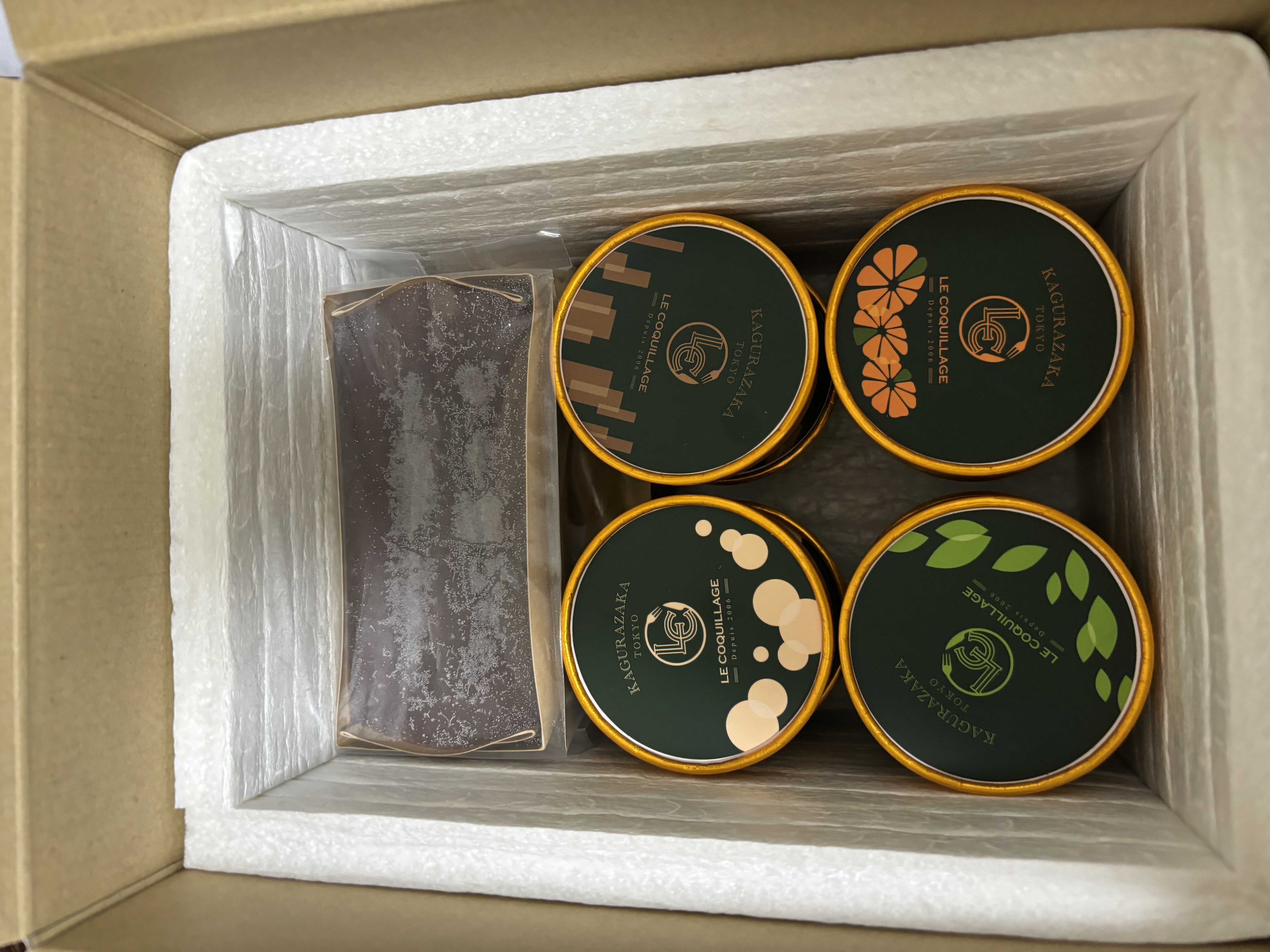 内側にしっかりとした保護クッションのついたジャストサイズのBOX。スイーツが美しい状態で到着。