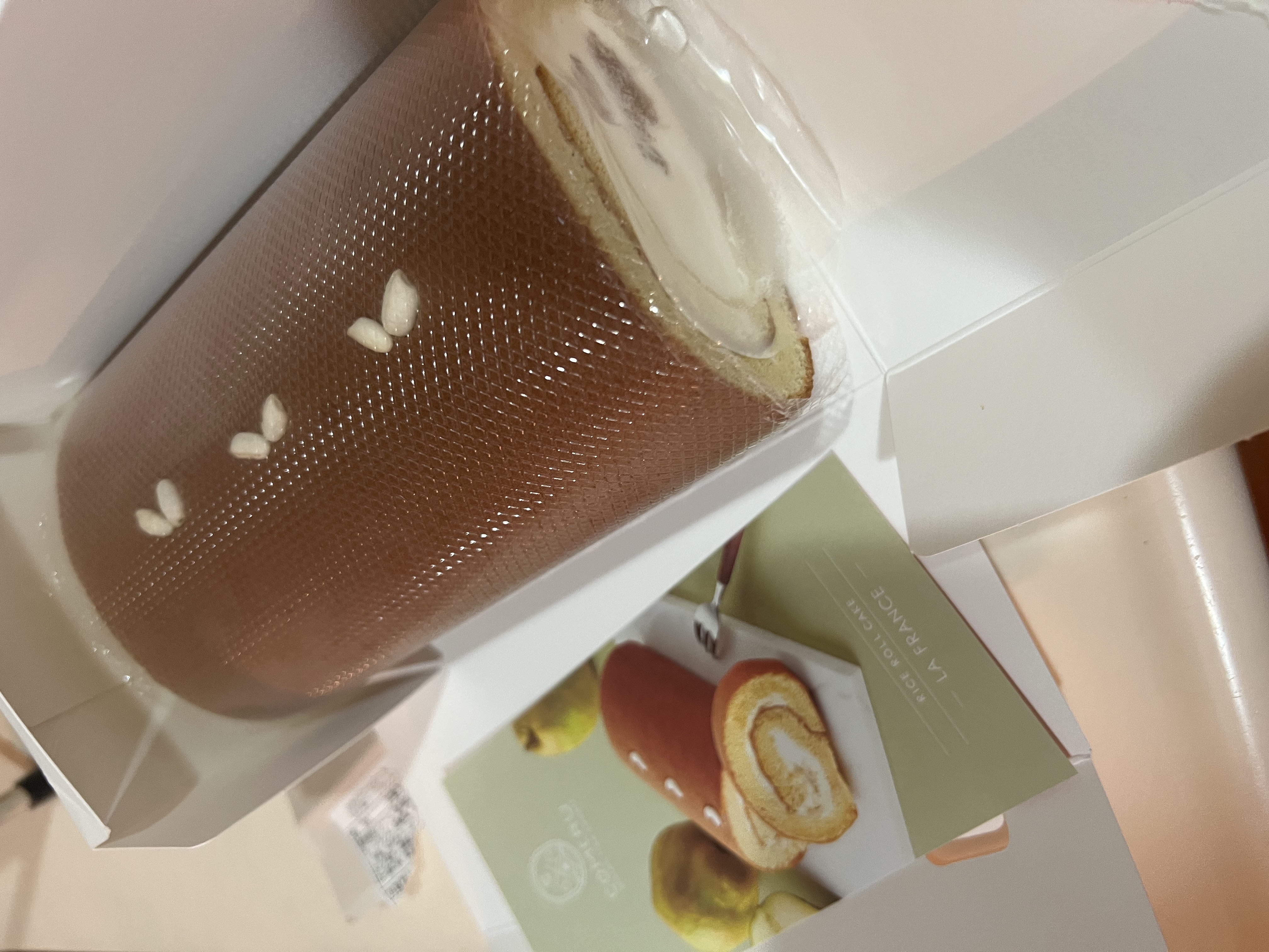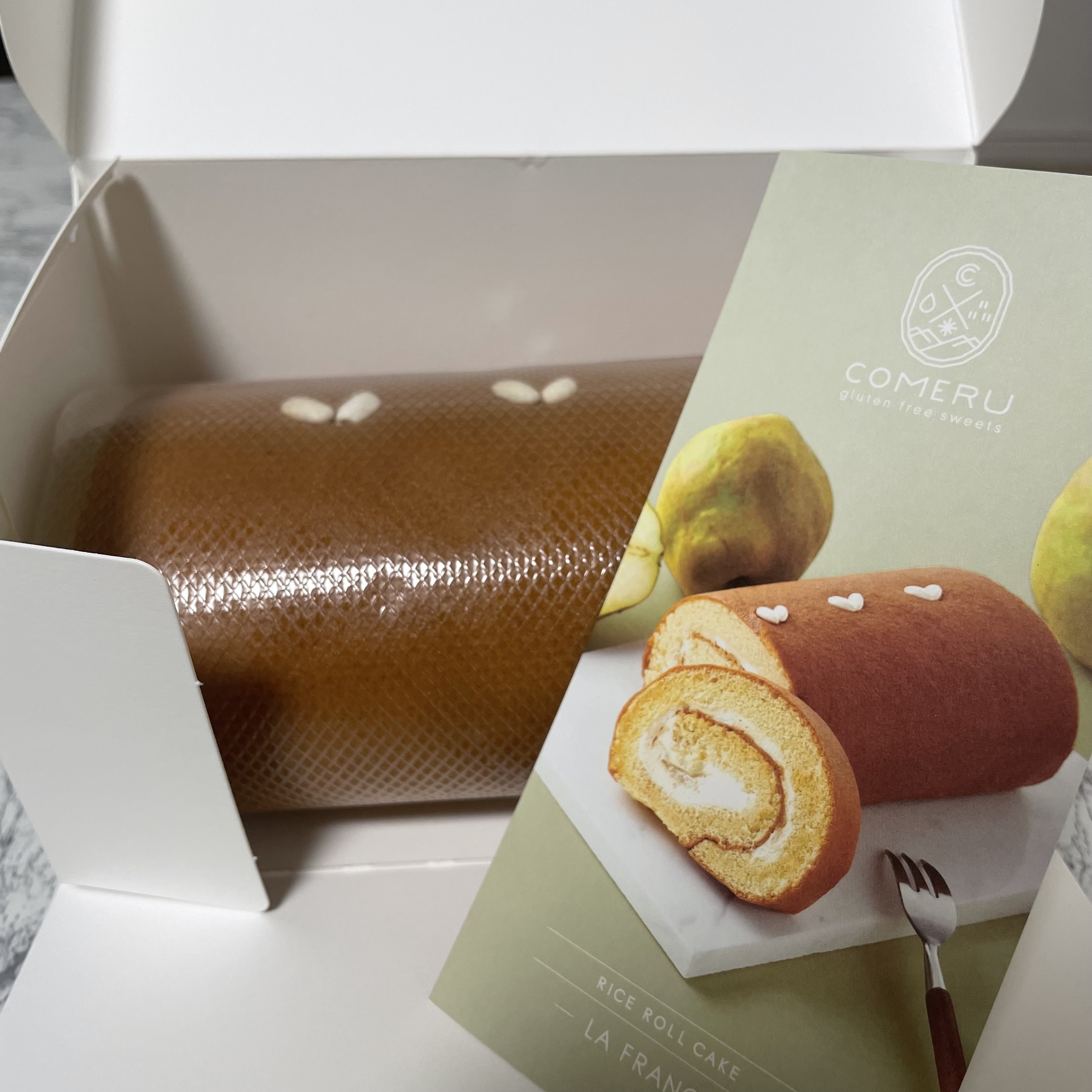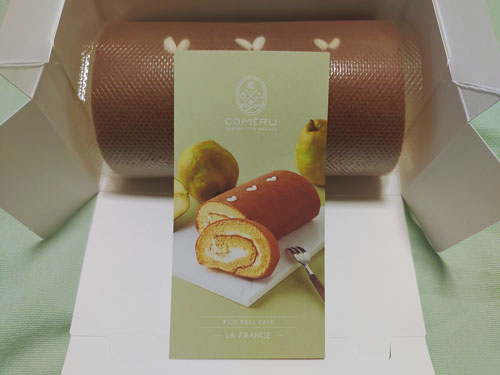 食べてみた感想としては、ラ・フランスのスッキリとした甘みで生クリームもあっさりと感じられ、パクパクと食べられる軽い口当りでした。ラ・フランスのコンポートも入っていて果実の美味しさがたっぷり感じられます。ロールケーキの生地もしっとりふわふわで、米粉らしい優しさを感じる生地はとても美味しかったです。果実の美味しさがぎゅっと詰まった特別感のあるスイーツでした。