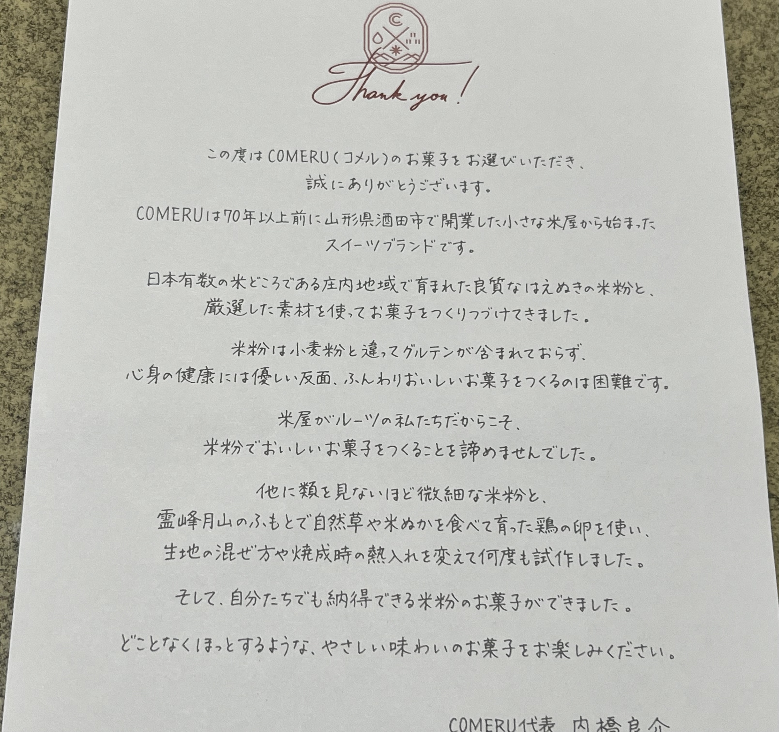 コメルのスイーツは、そんな庄内産はえぬきを超微細な粒子の米粉に加工して焼き上げています。