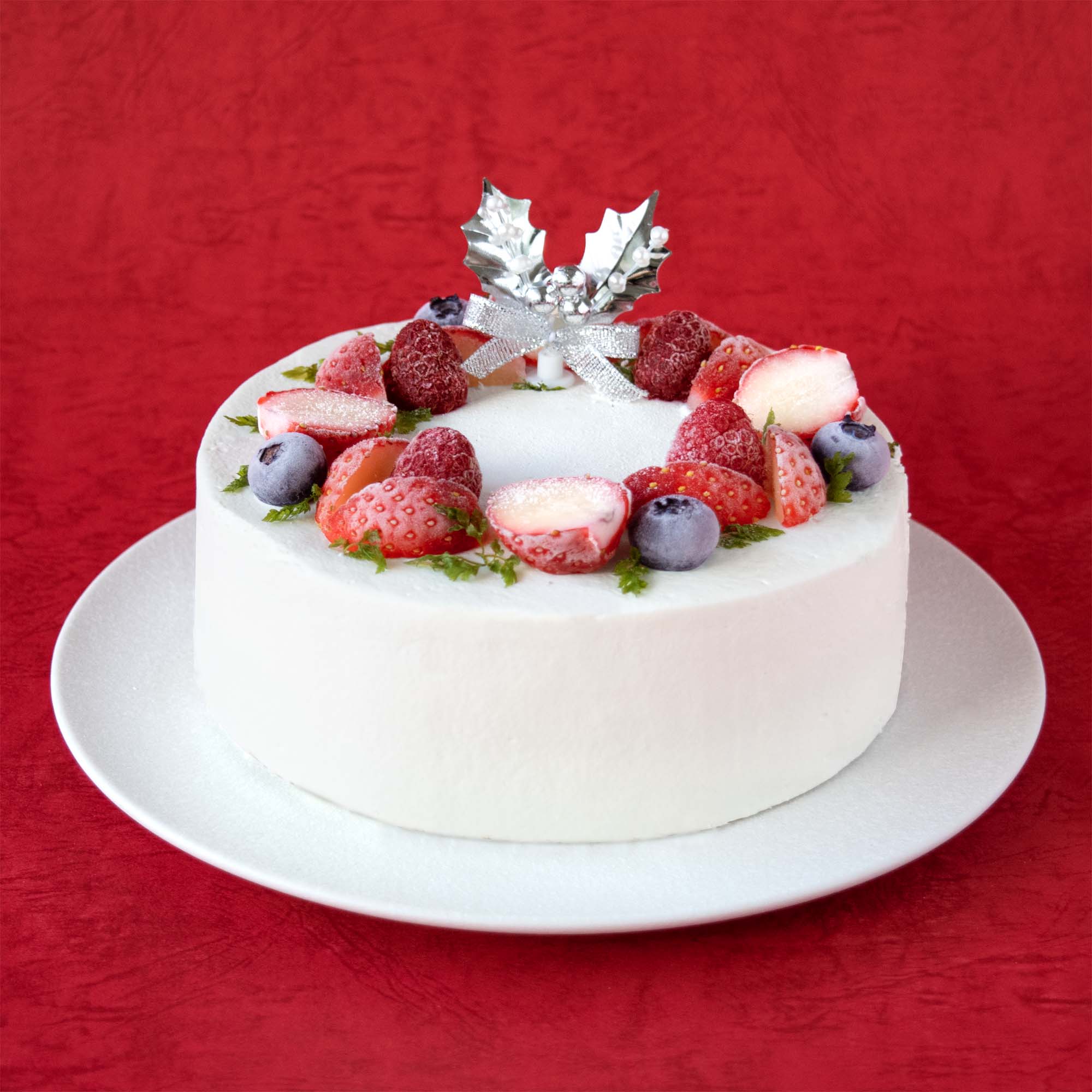 山形県庄内産はえぬき米粉を100%使用したふわふわスポンジに北海道産生クリームをたっぷり使い、ベリー類をふんだんにのせたクリスマスケーキです。