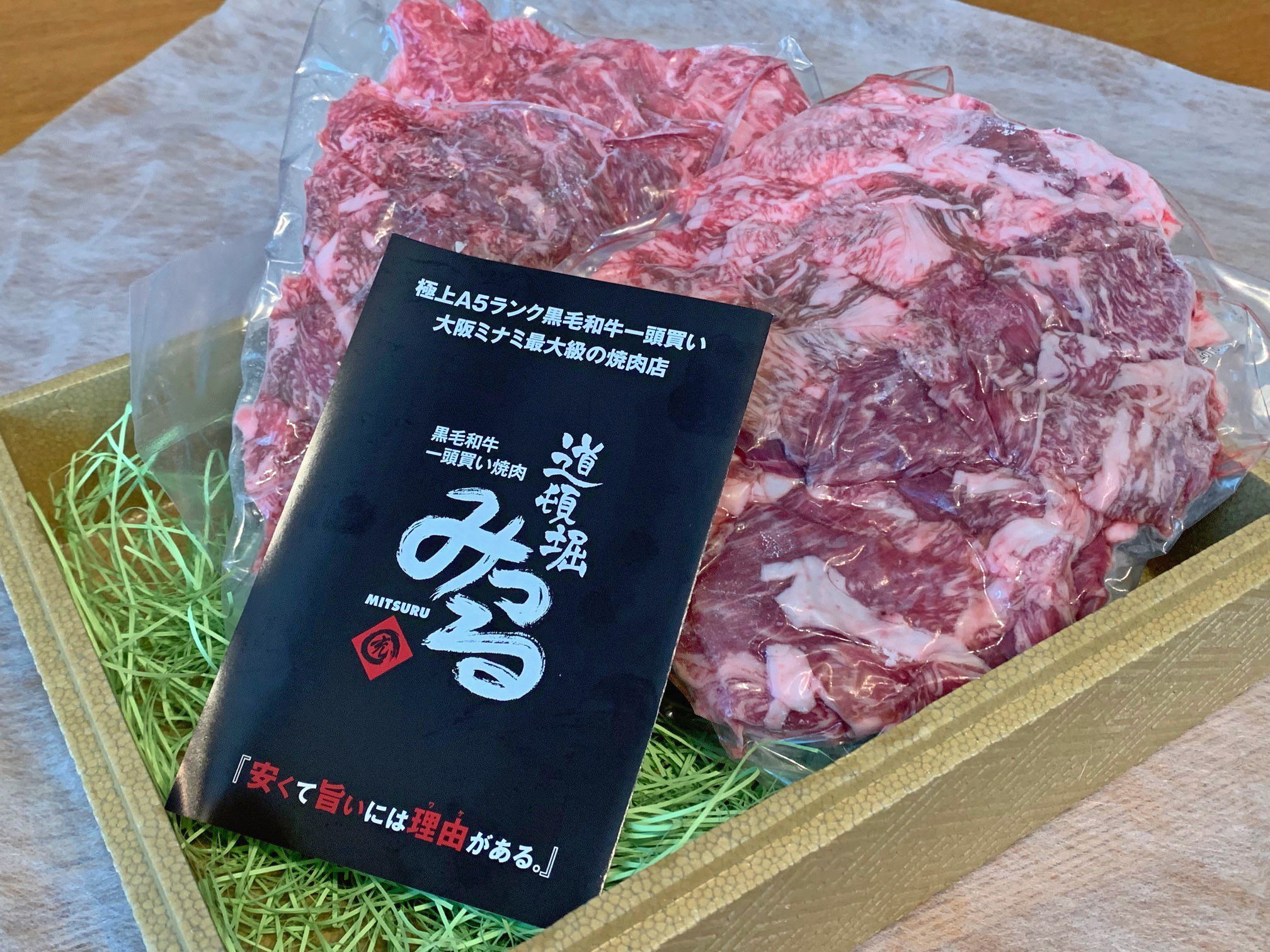 大阪道頓堀にある焼き肉屋の数量限定「A5黒毛和牛切り落とし」です。一頭買いをしているからこそできる上質な切り落としで、様々な部位がセットになっています。500g入りパックが2個 計1kg入りの、ボリューム満点な商品。牛丼、すき焼き、肉じゃがなど多彩な料理に活躍できます。醤油ベースと味噌ベースのたれも一緒に届くので、食べ比べが楽しめます。
