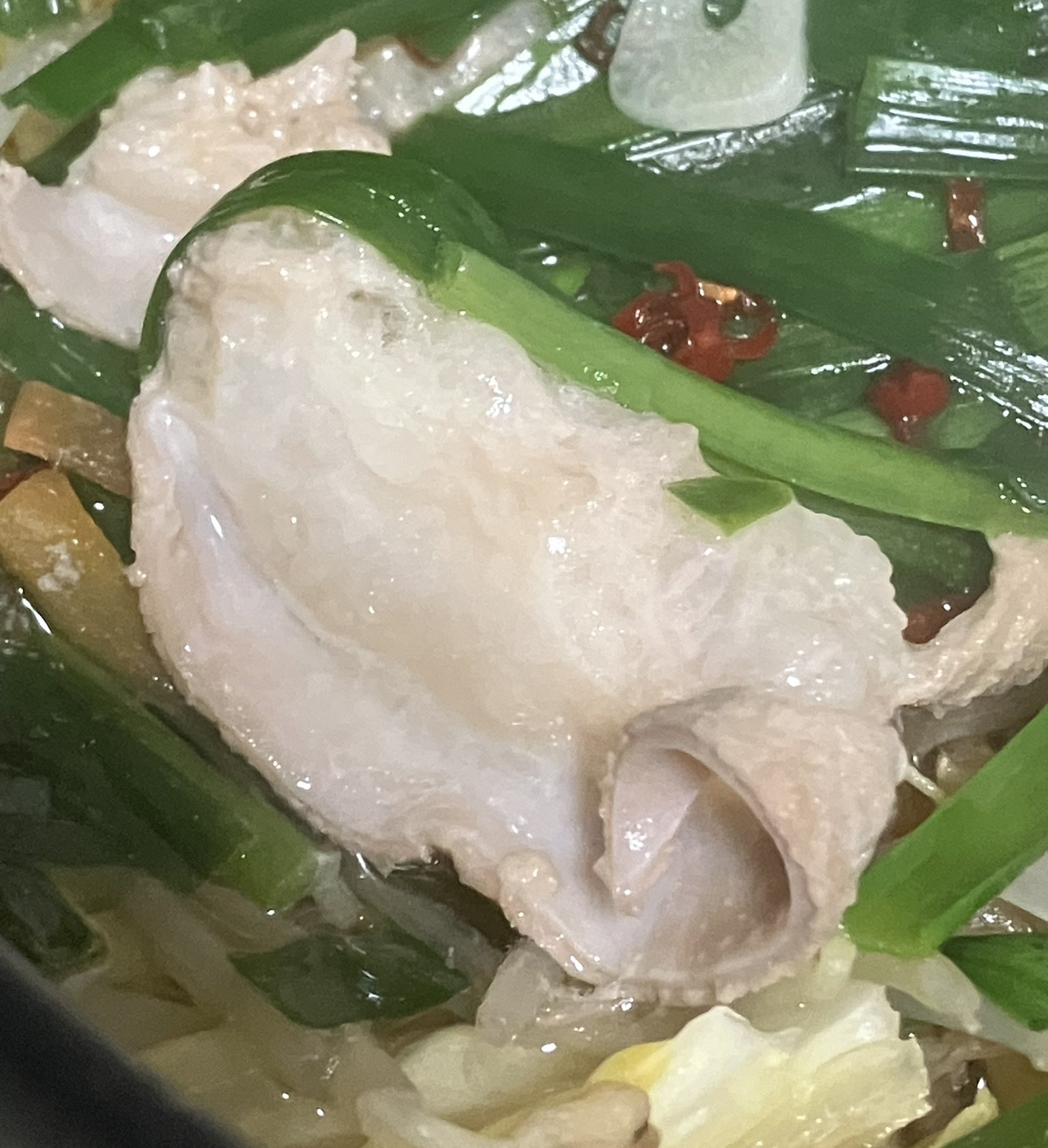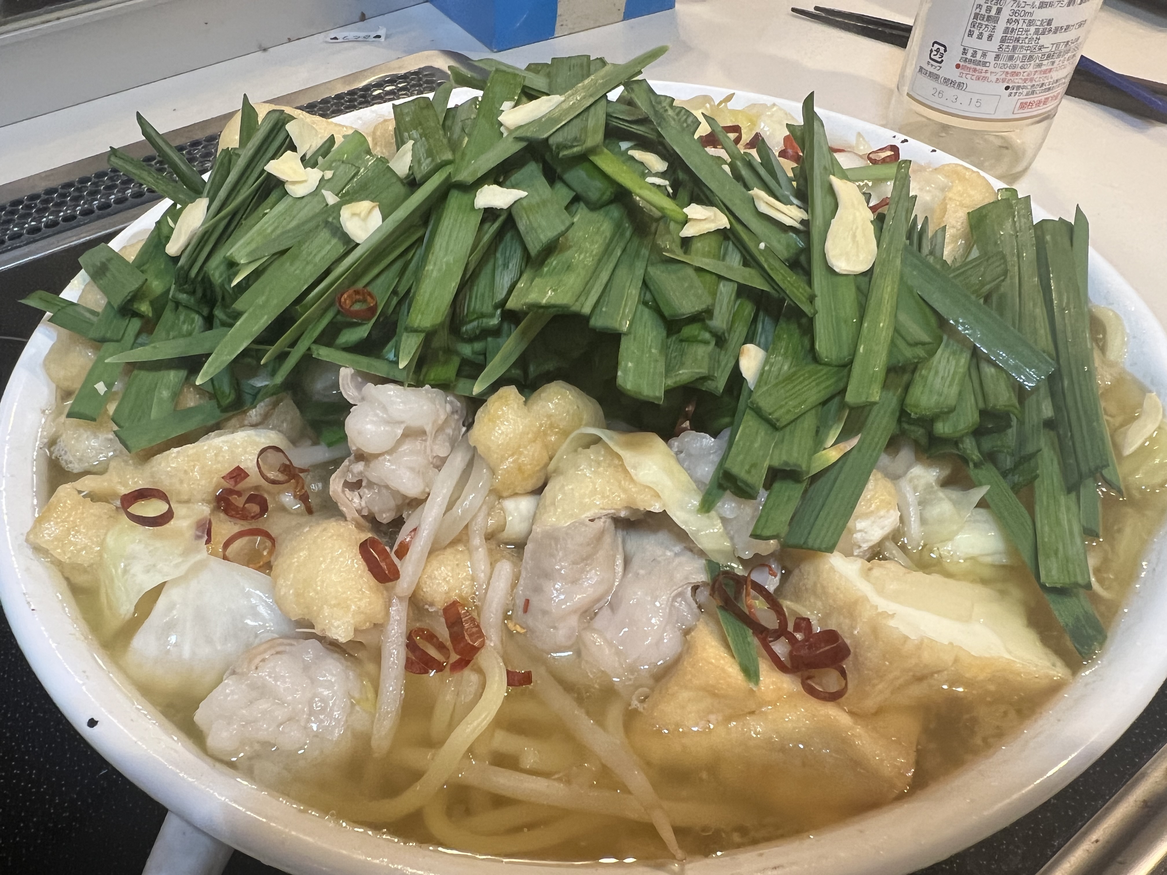 しょうゆ味のスープは、牛骨の出汁がしっかり効いていて深みのある味わい。もつの脂と野菜の甘みが溶け合うことで、時間が経つほど美味しさが増していきました。シンプルながら完成度の高いスープで、白ご飯が進みます。